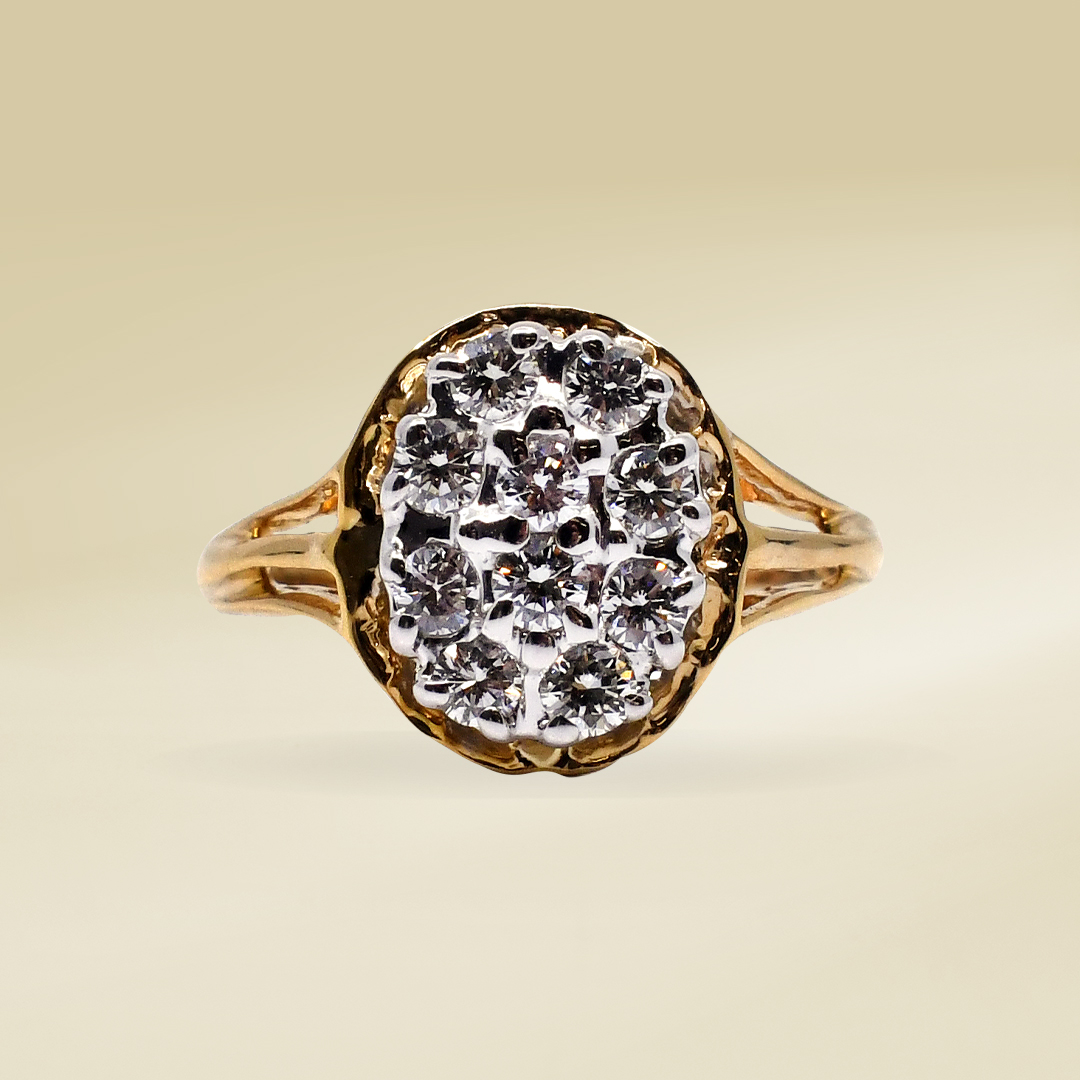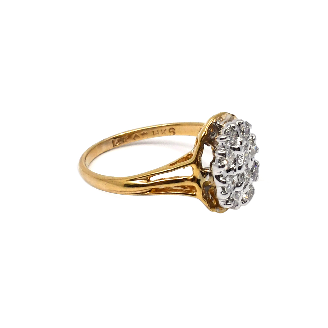 14K Ladies’ Ring with Round Cut, Cluster Diamonds
