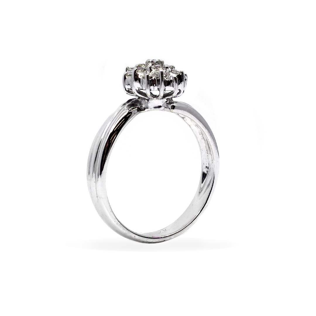 14K Platinum with Round Cut, Cluster Diamonds