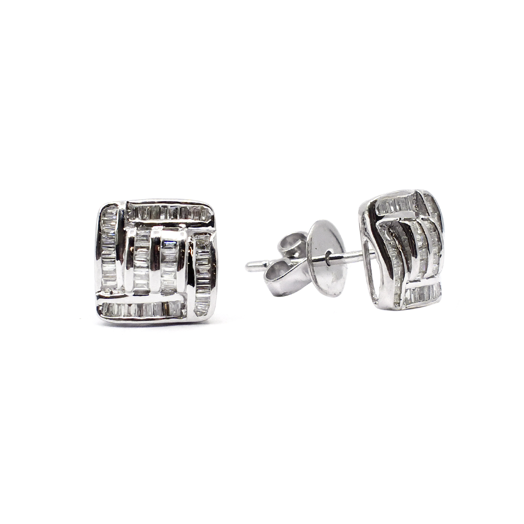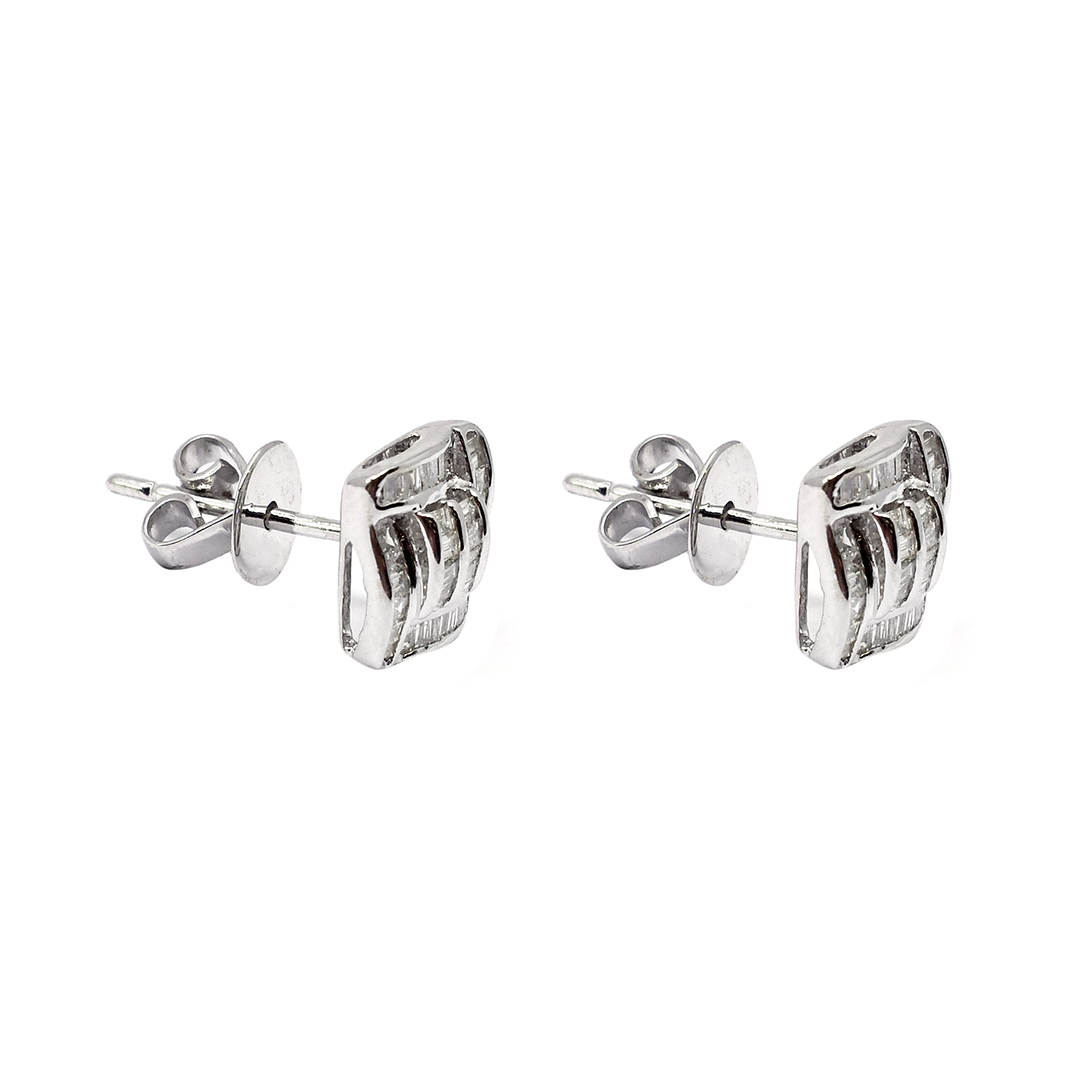 14K White Gold Earrings with Baguette Cut Diamonds