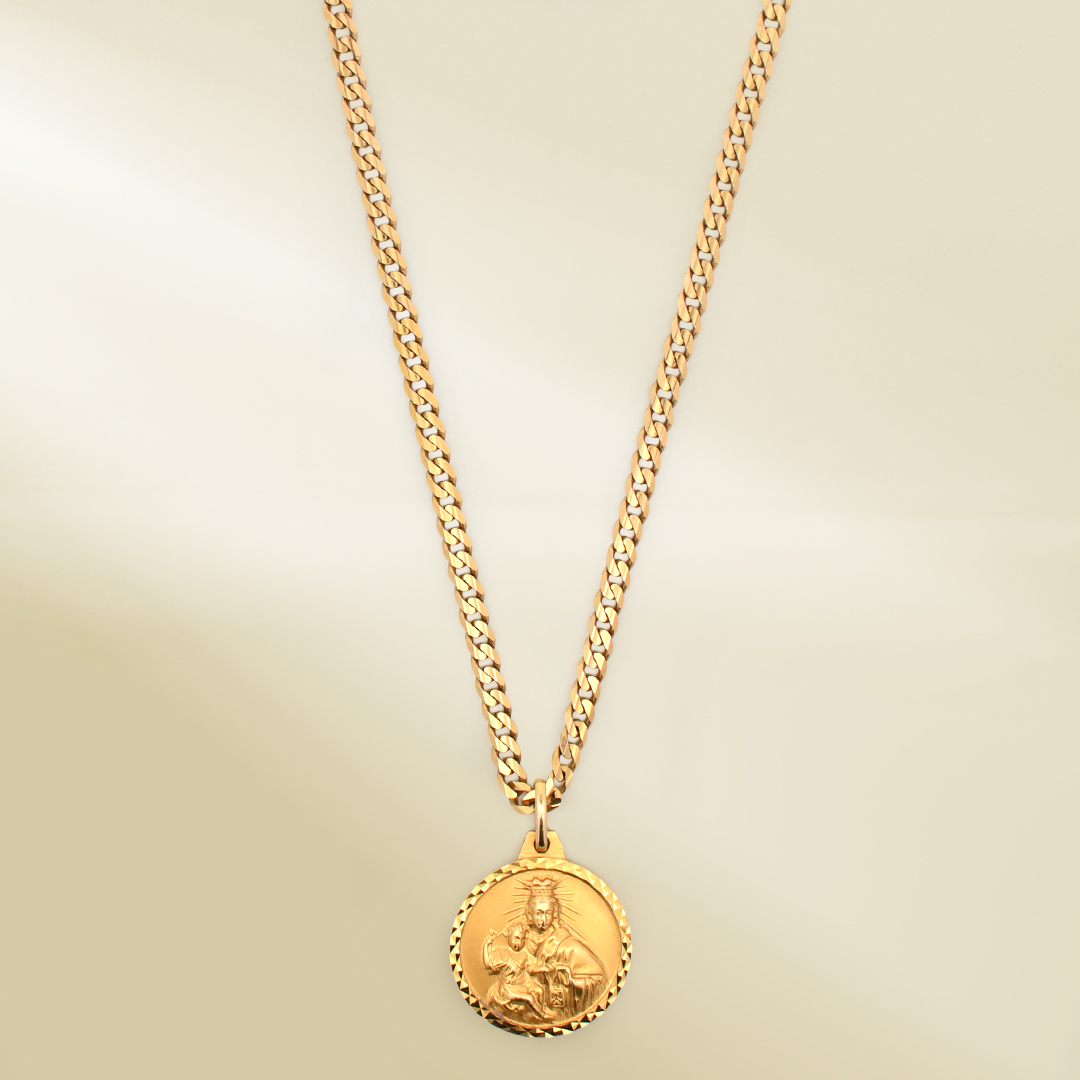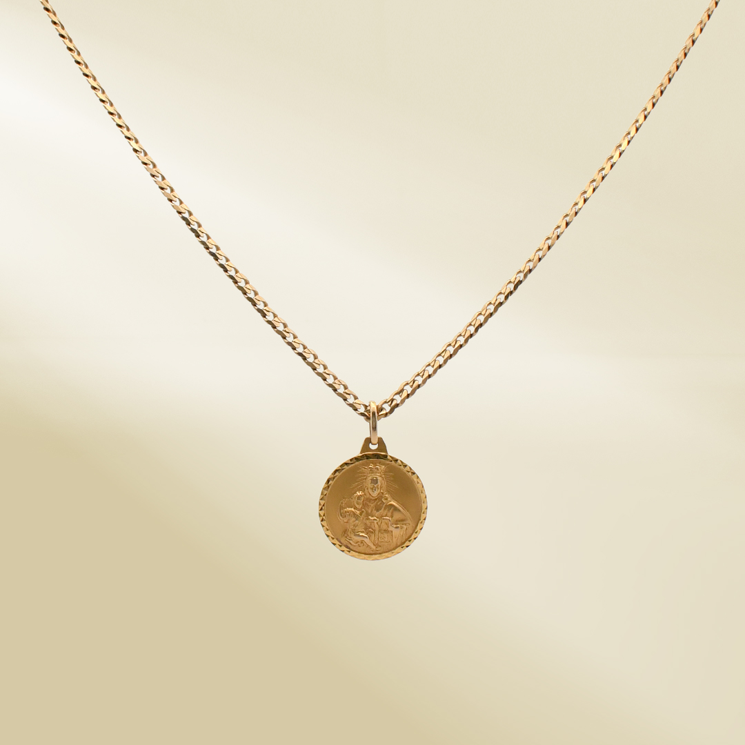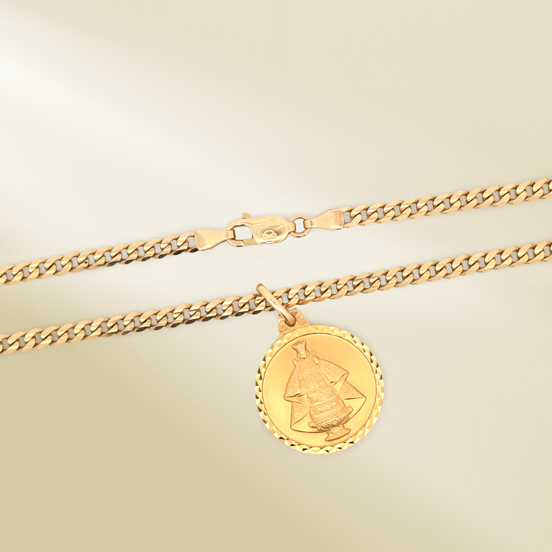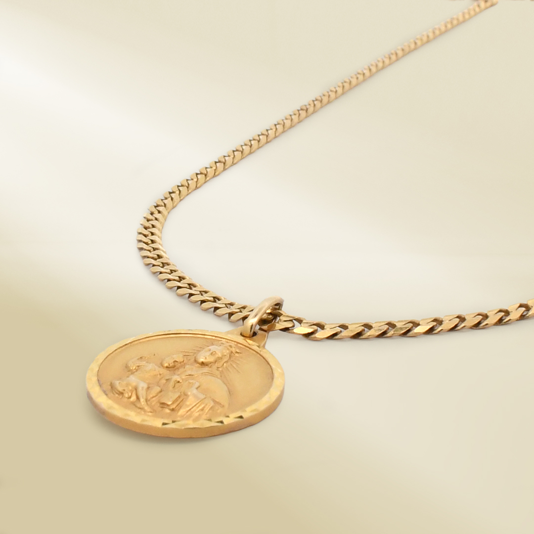 14K Yellow Gold Curb Chain Necklace with Religious Pendant