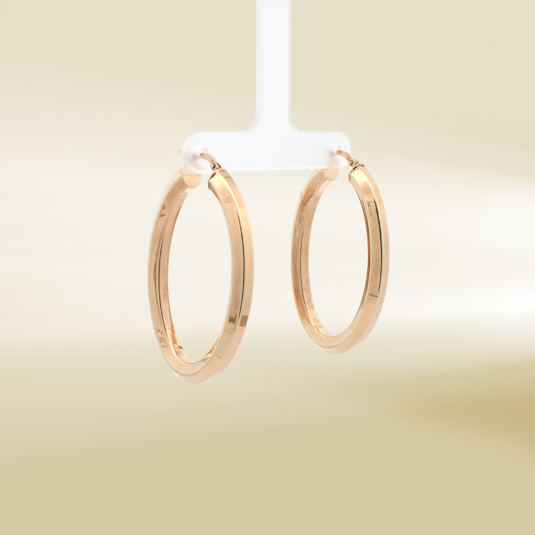 14K Yellow Gold Oval Hoop Earrings