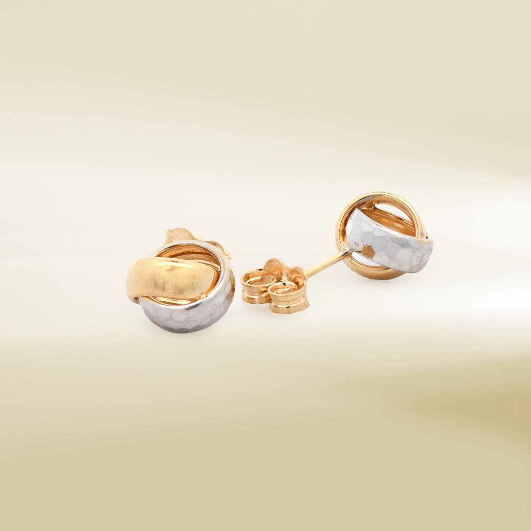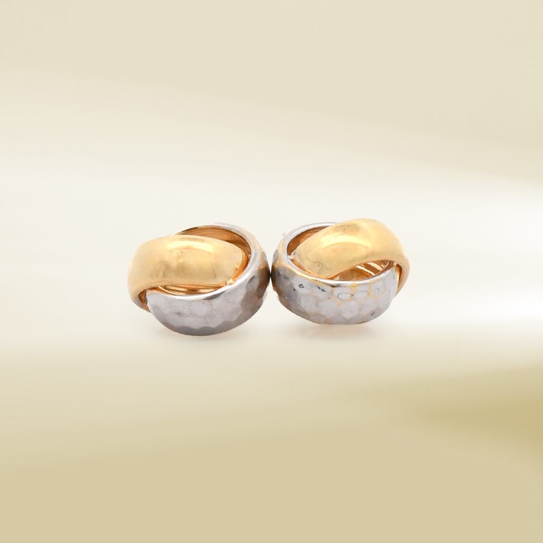 18K Two-Tone Ball Knot Design Earrings