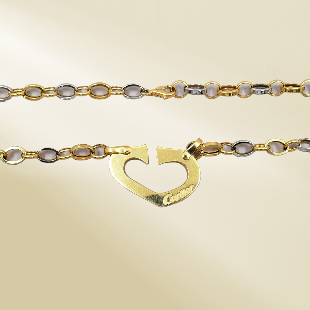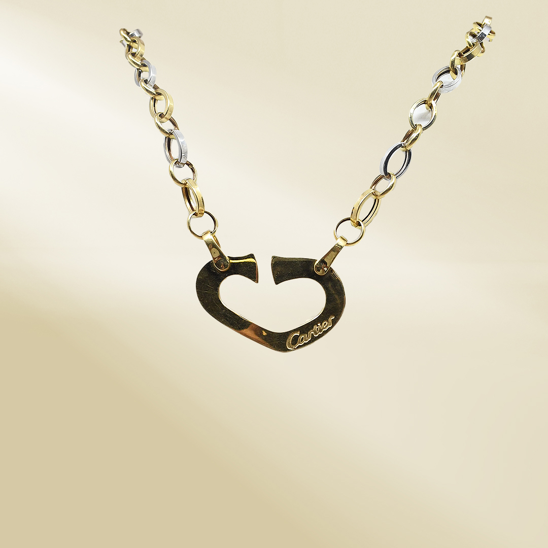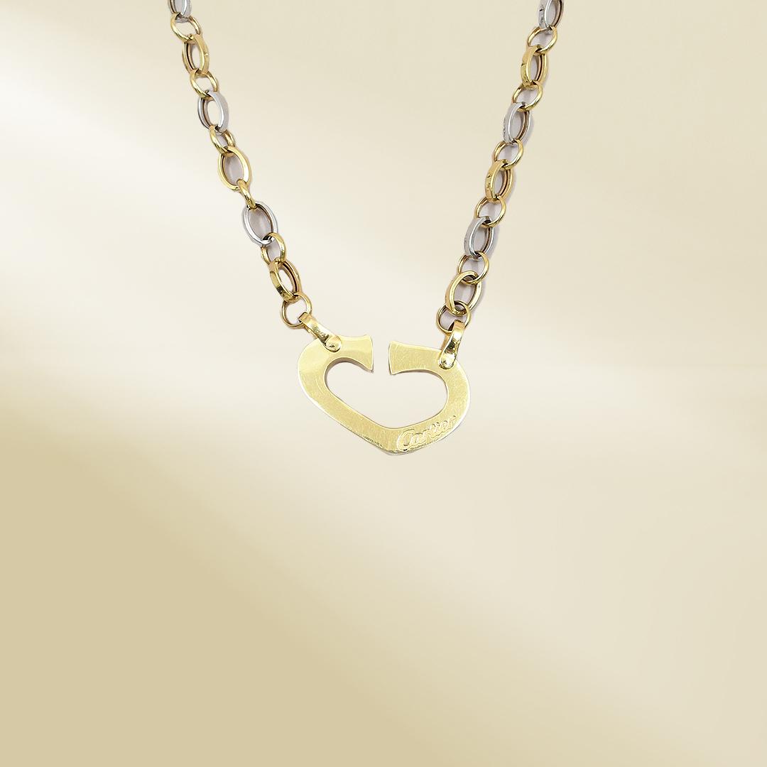 18K Two-Tone Cable Chain Necklace with Brand-Inspired Pendant