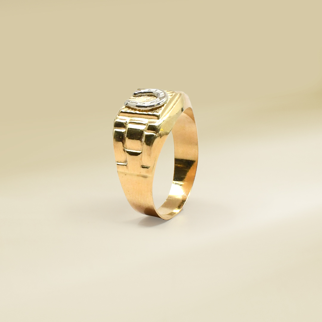 18K Two-Tone Horseshoe Design Gents’ Ring