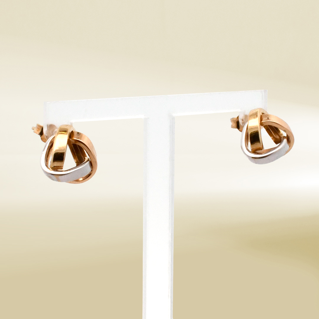 18K Two-Tone Knot Design Earrings