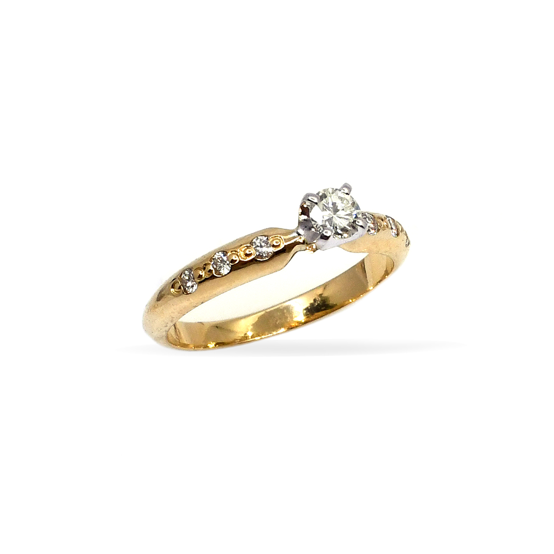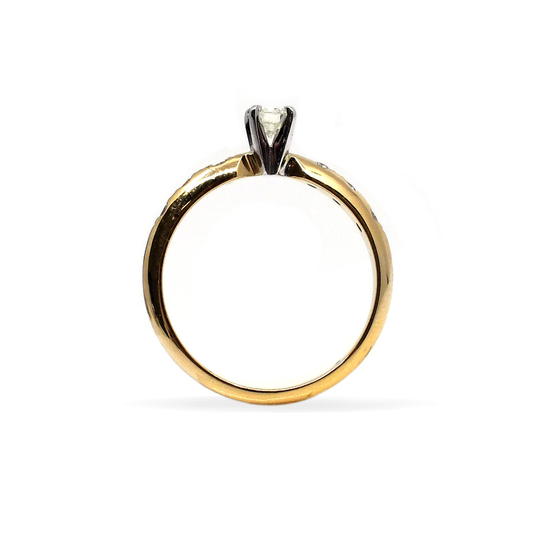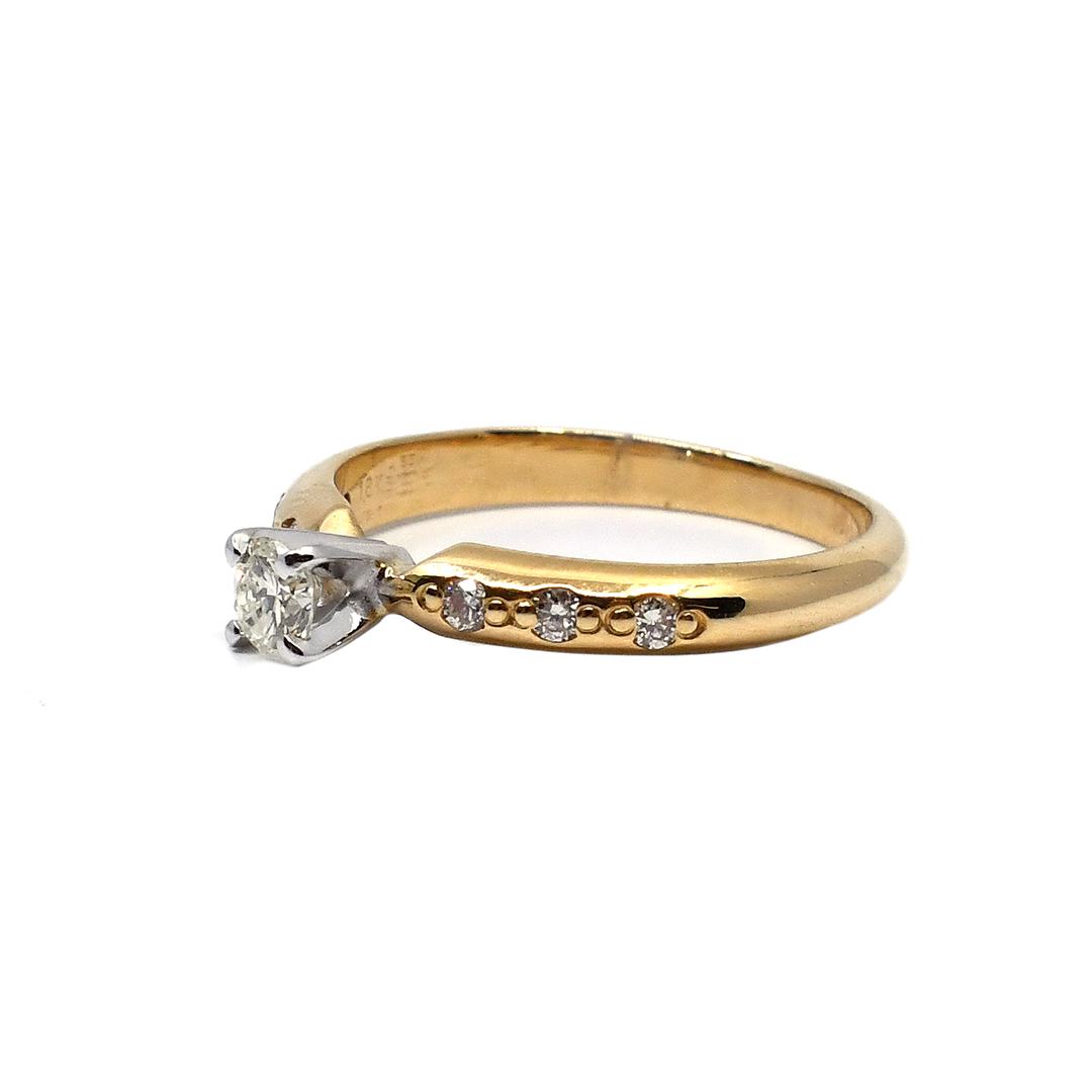 18K Two-Tone Ladies’ Ring with Round Cut, Single Stone Diamonds