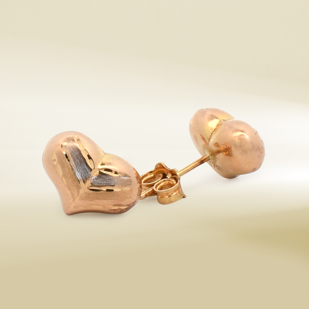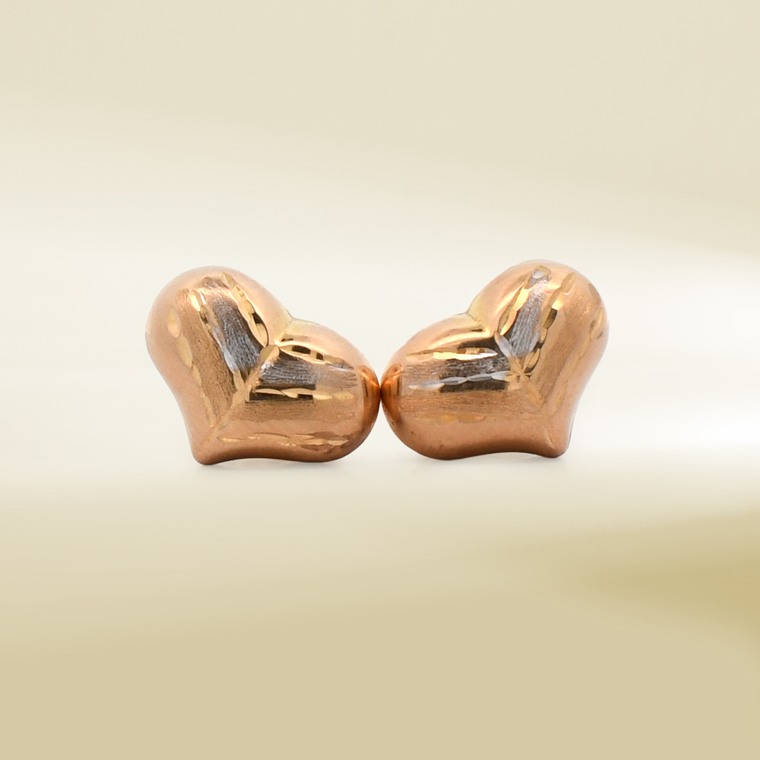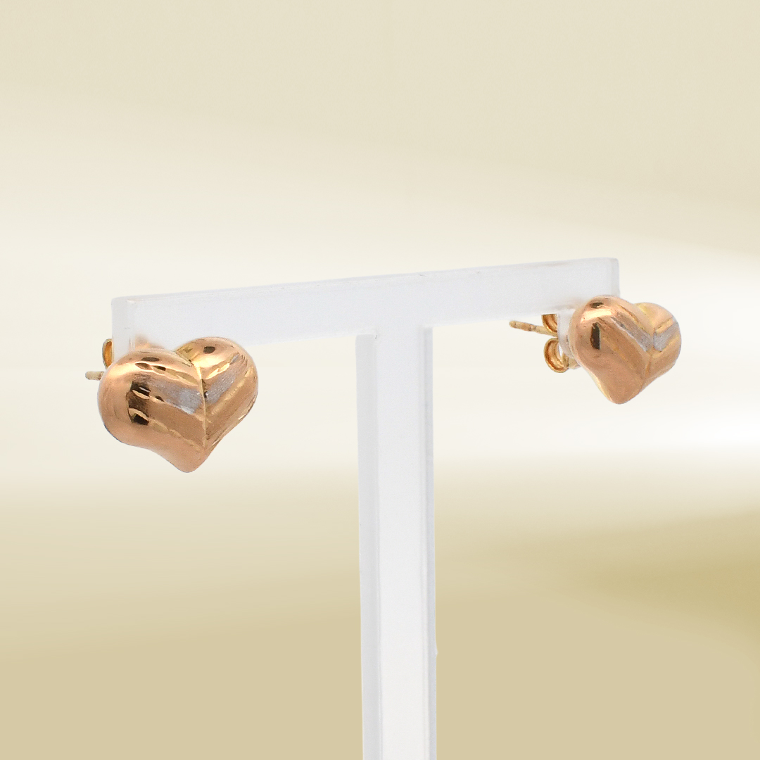 18K Two-Tone Puffy Heart Earrings