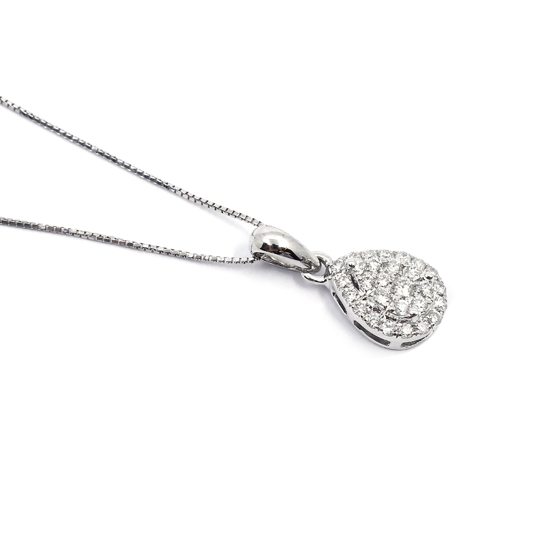 18K White Gold Box Chain Necklace and Pendant with Round Cut Diamonds