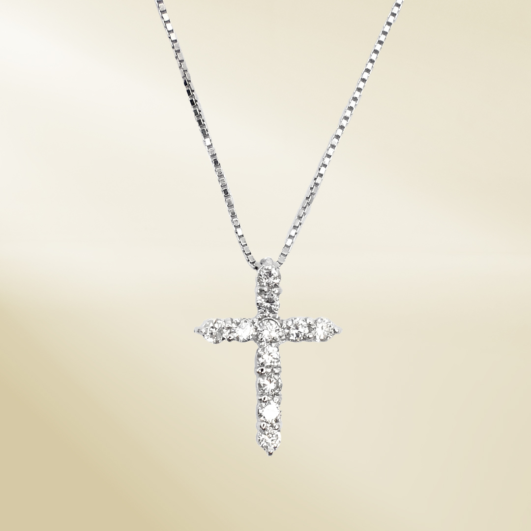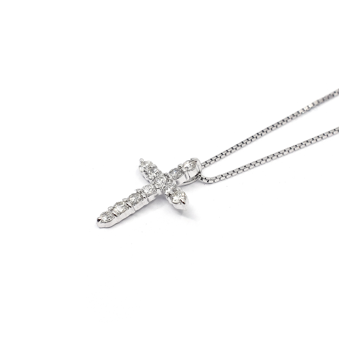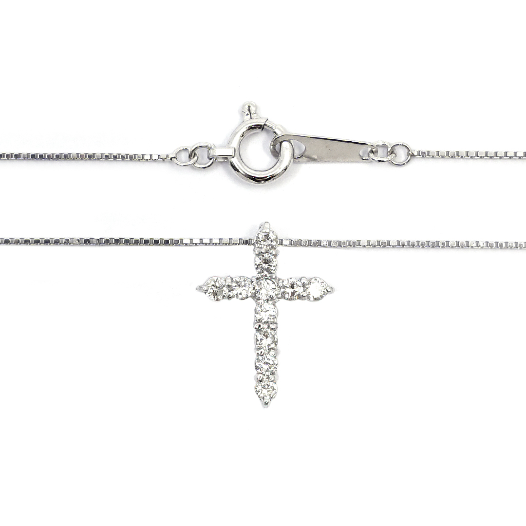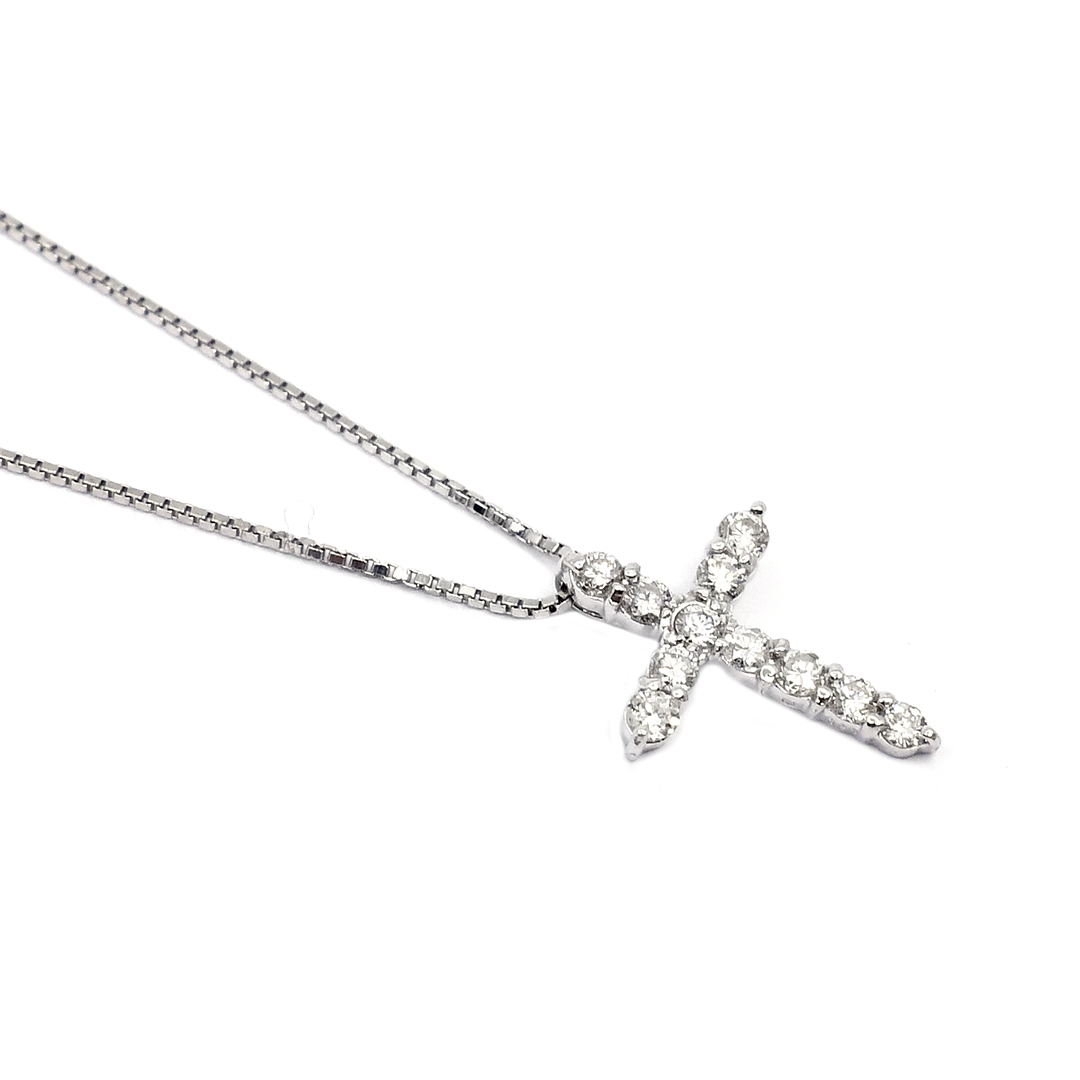 18K White Gold Box Chain Necklace with Round Cut Diamonds