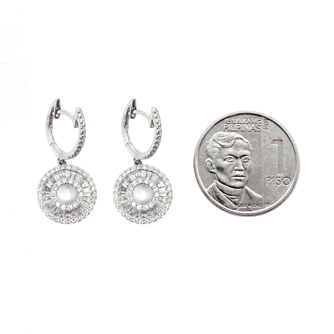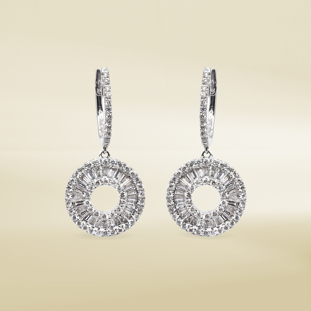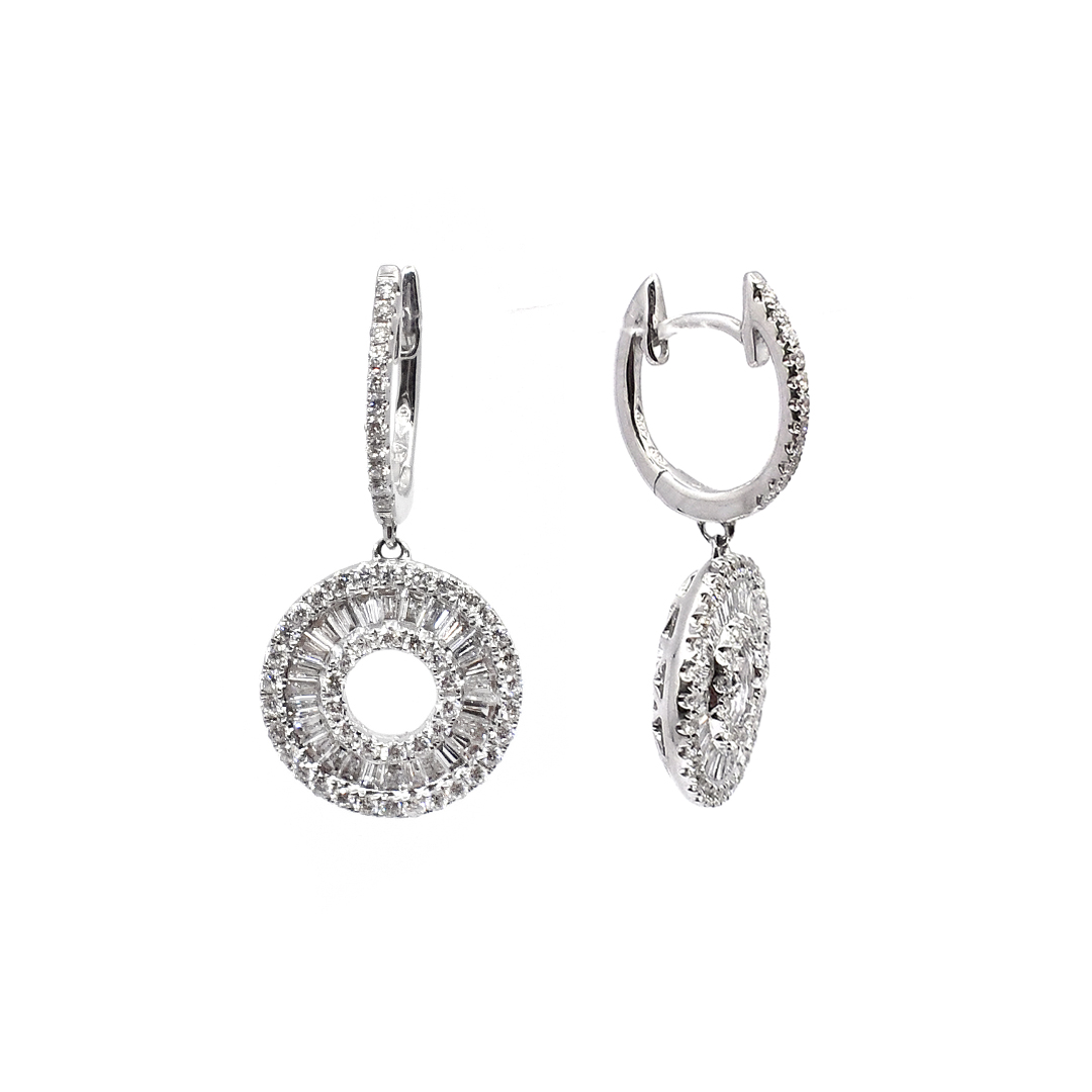 18K White Gold Earrings with Baguette and Round Cut Diamonds