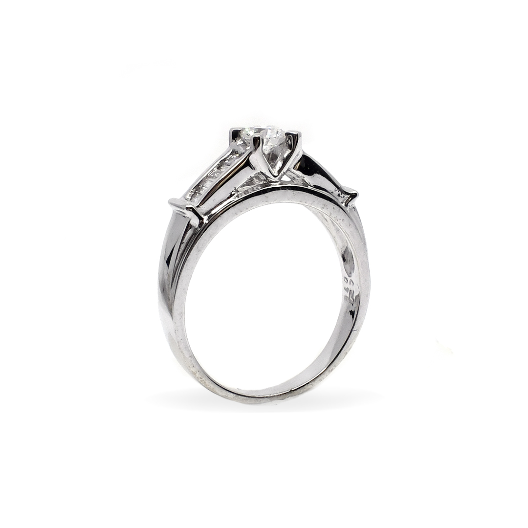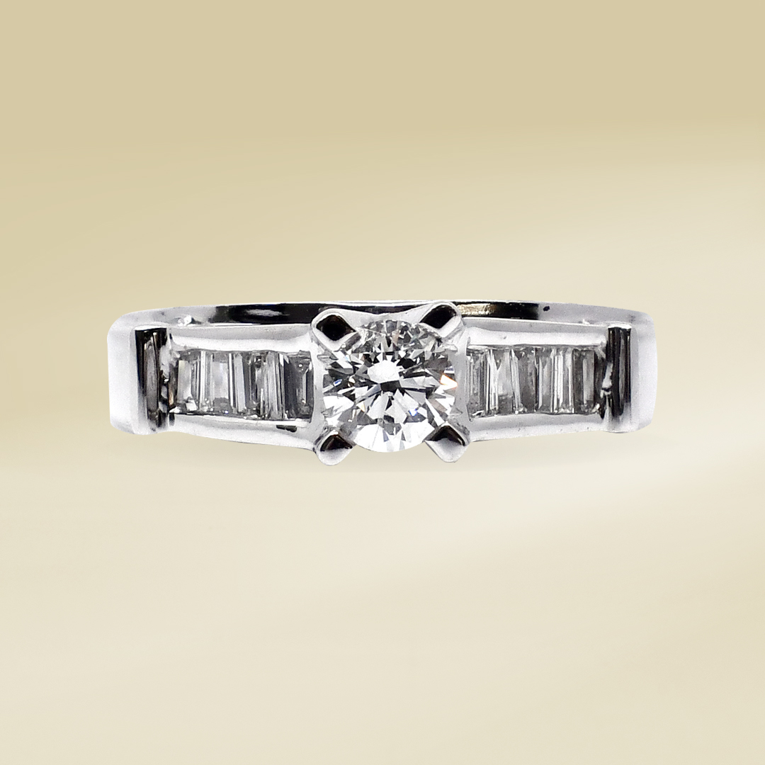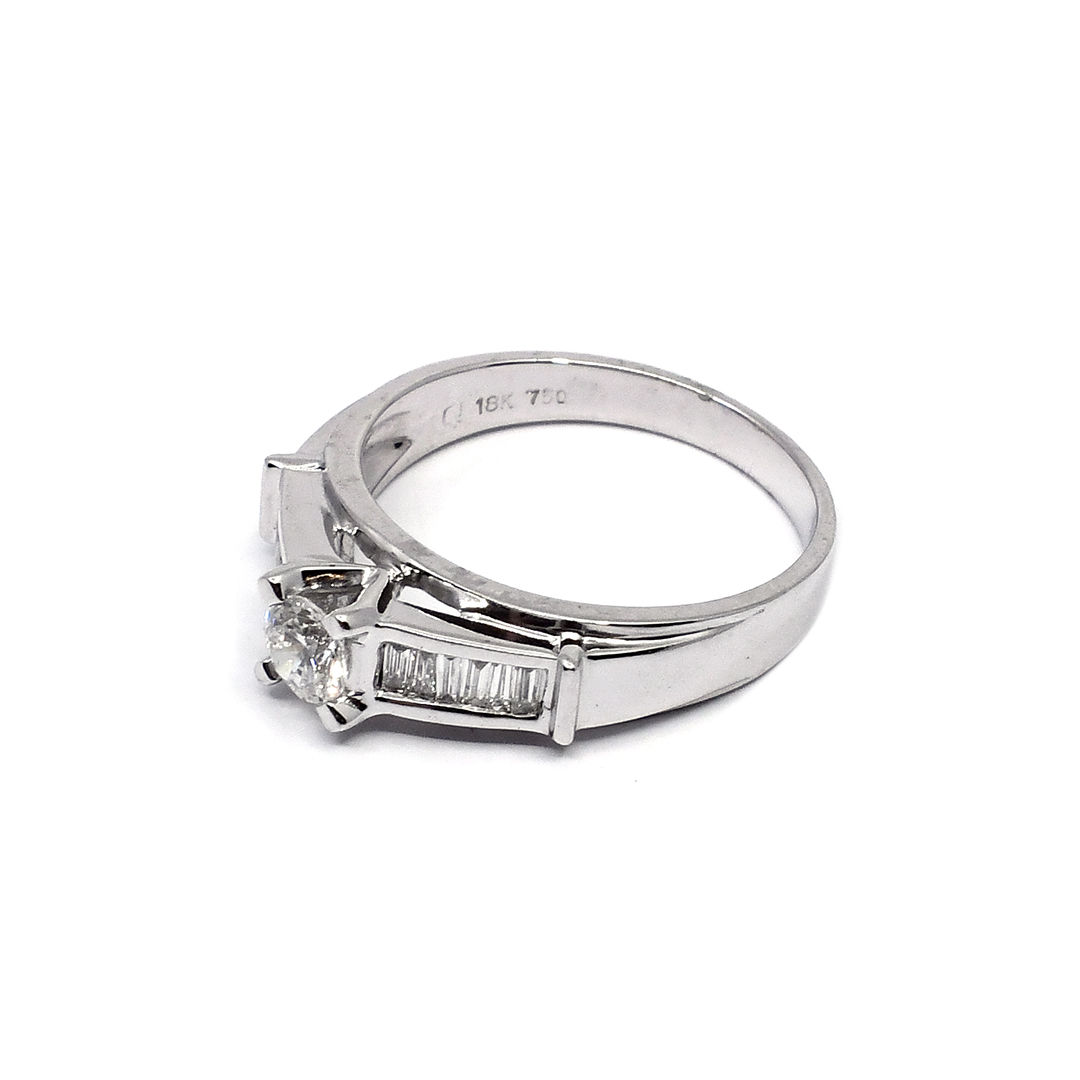 18K White Gold Ladies’ Ring with Baguette and Round Cut, Accented, Two Stone Diamonds
