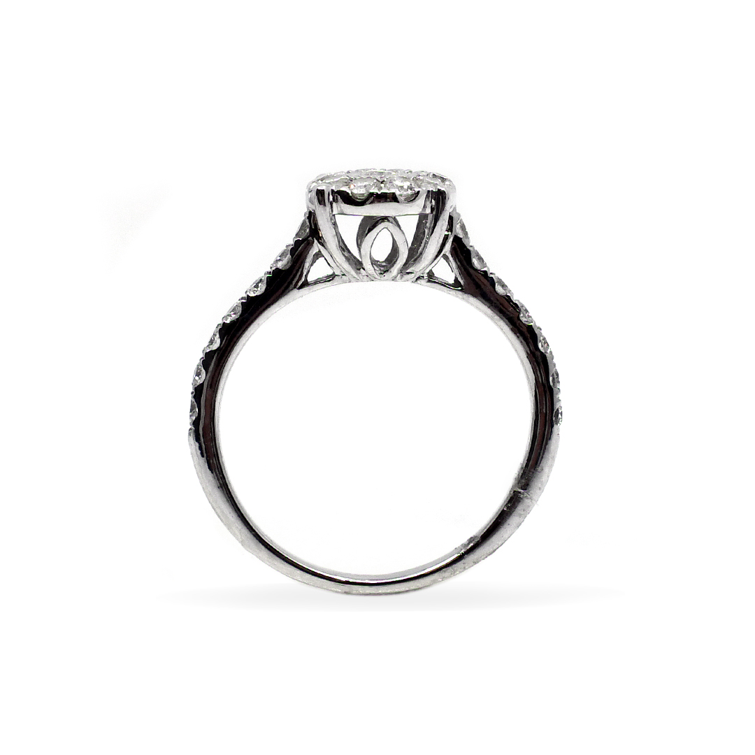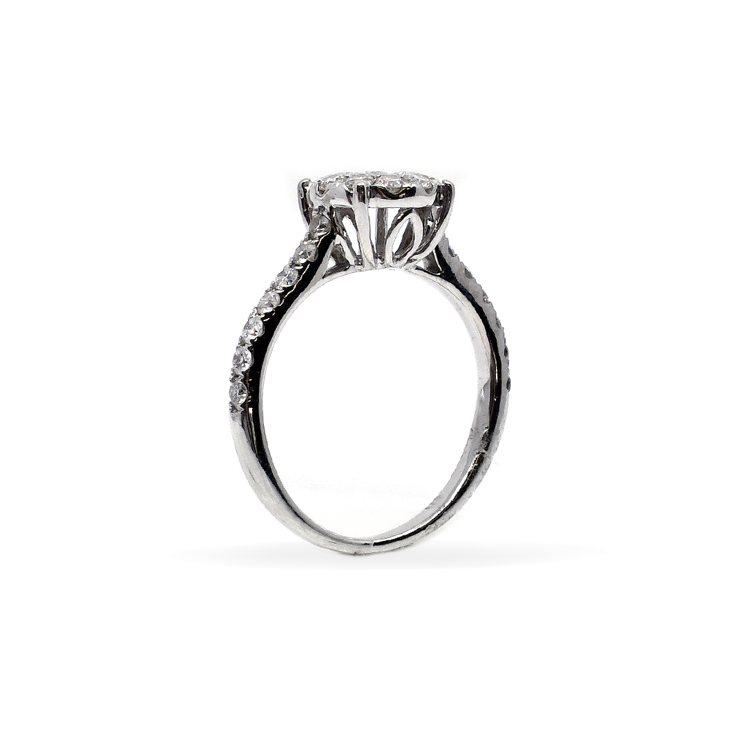 18K White Gold Ladies’ Ring with Round Cut, Illusion Accented Diamonds