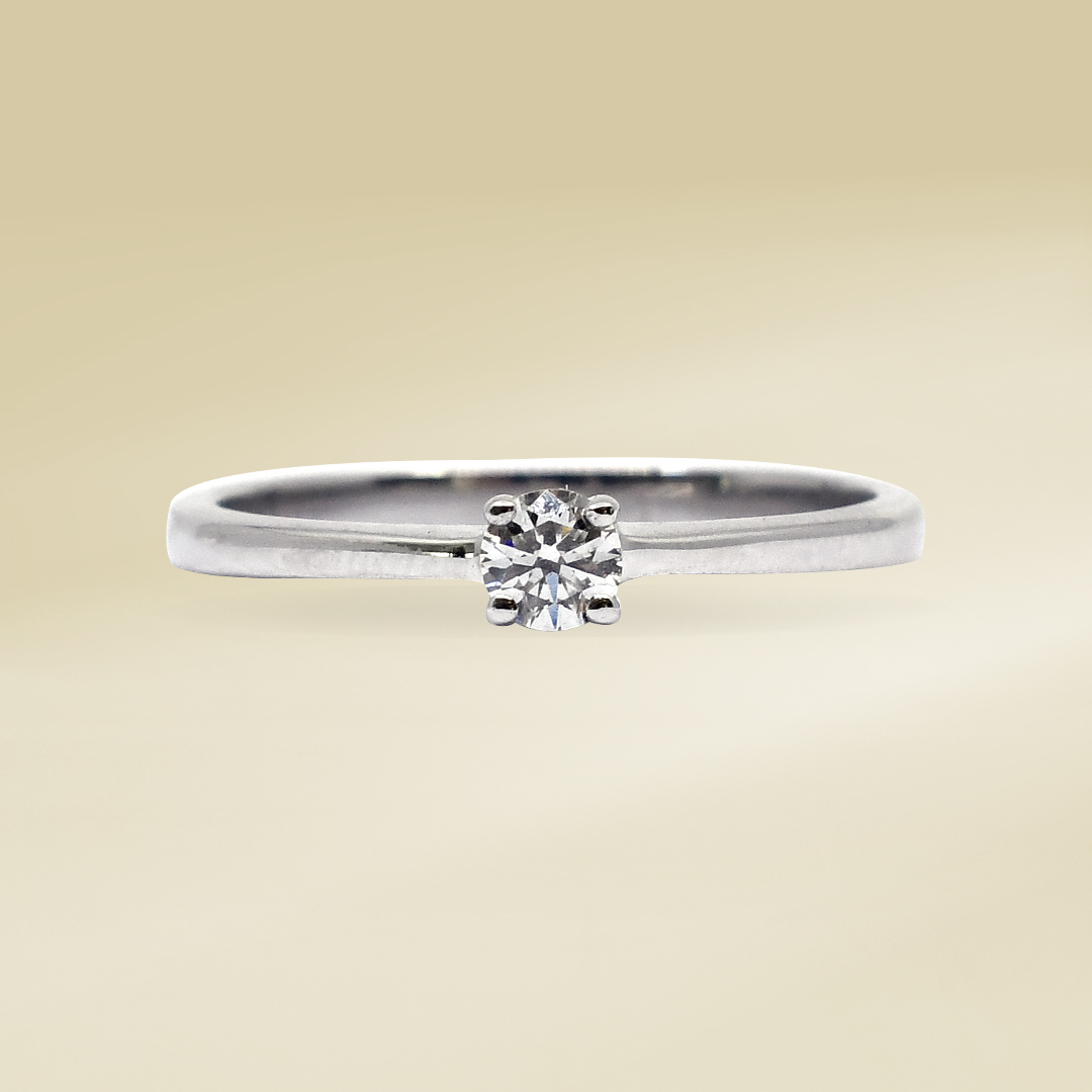 18K White Gold Ladies’ Ring with Round Cut, Single Stone Diamonds