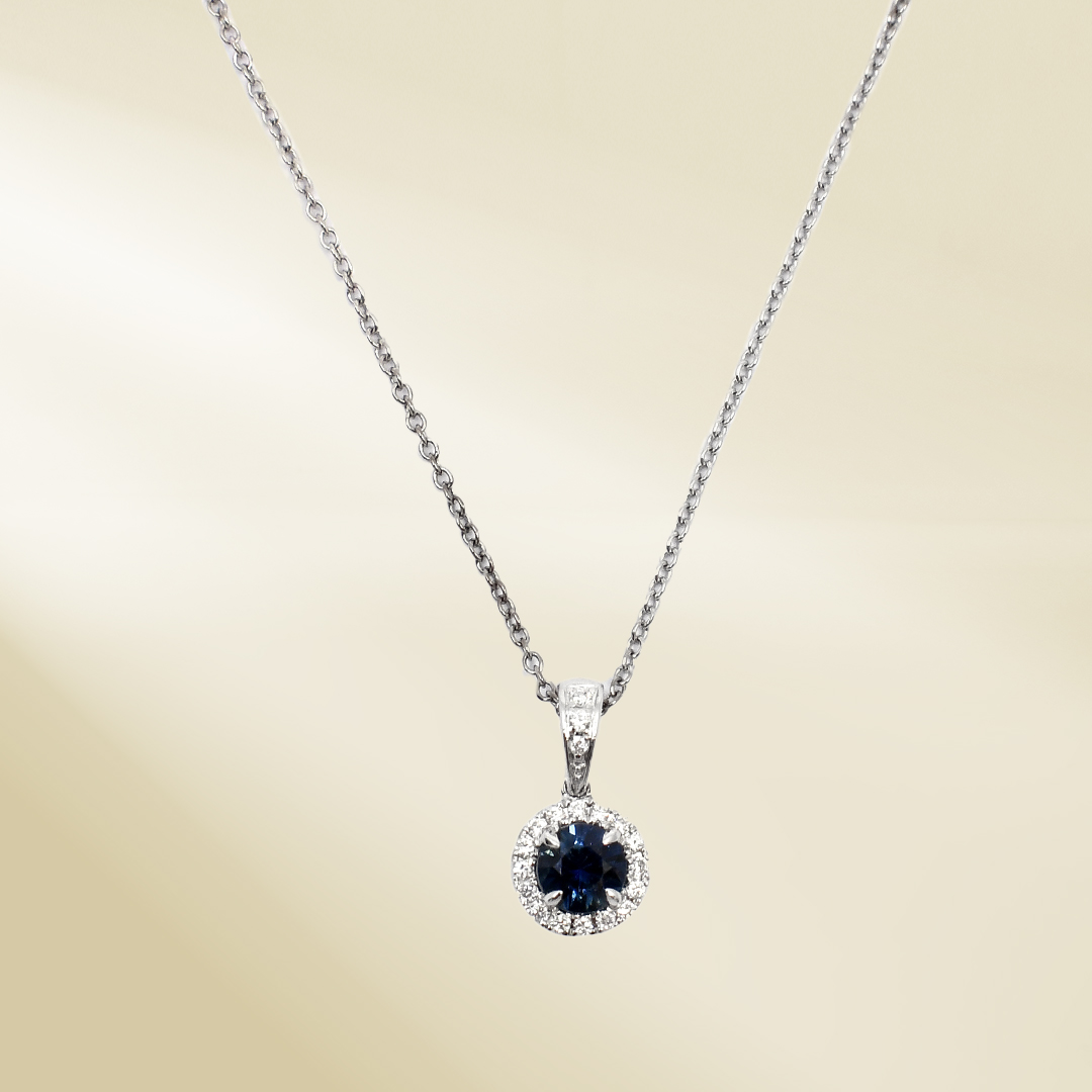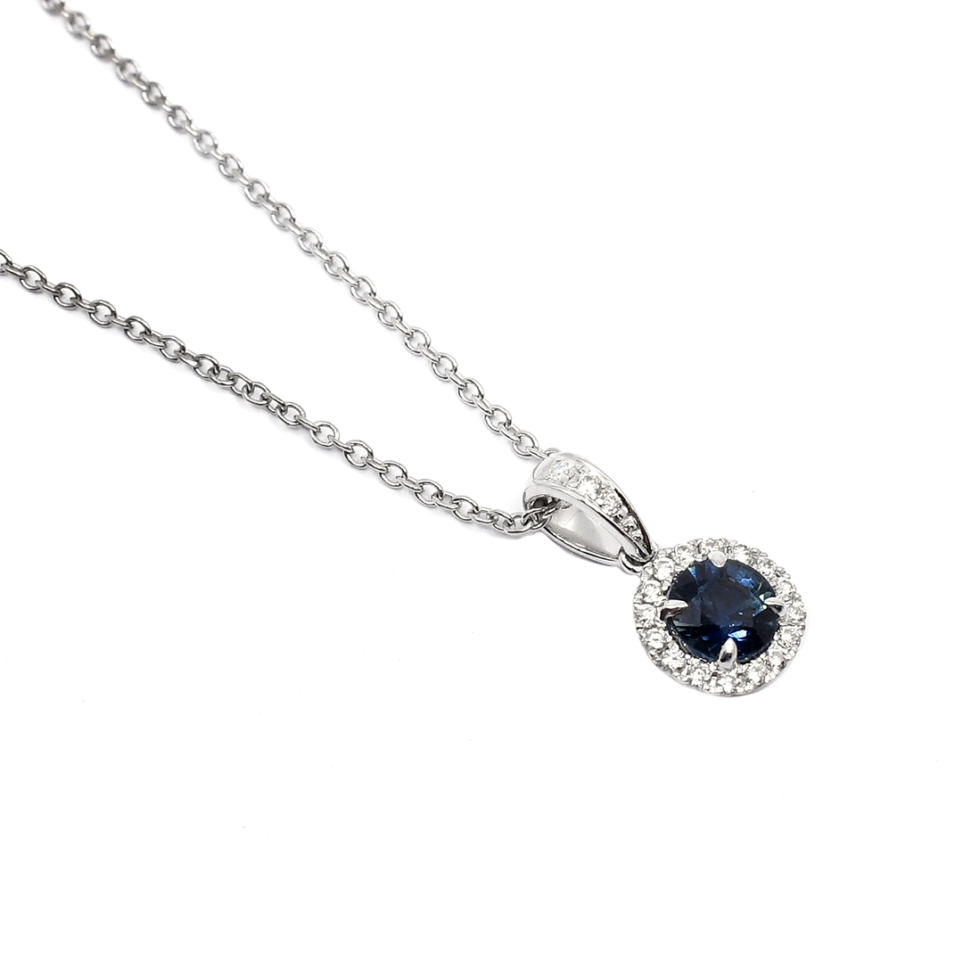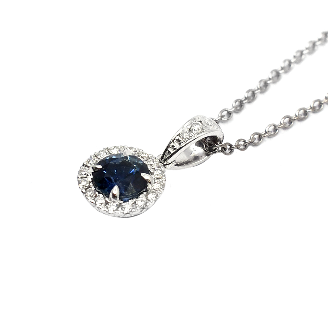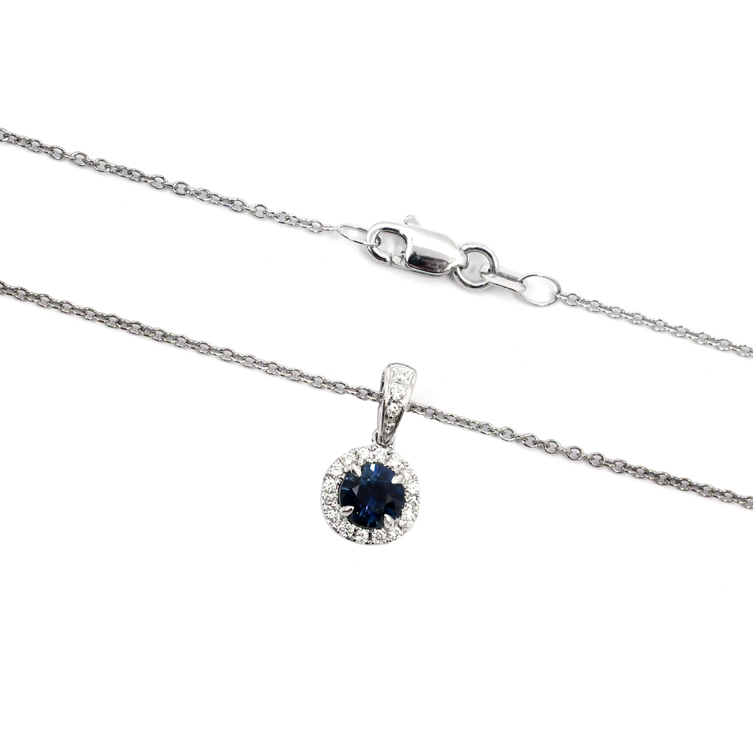 18K White Gold Link Chain Necklace and Pendant with Round Cut Diamonds
