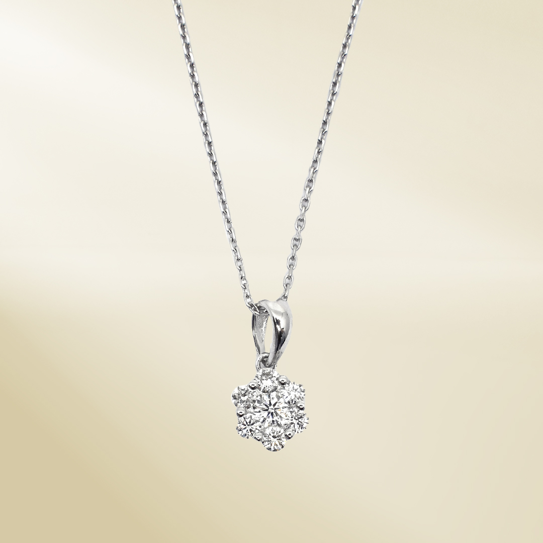 18K White Gold Link Chain Necklace and Pendant with Round Cut Diamonds
