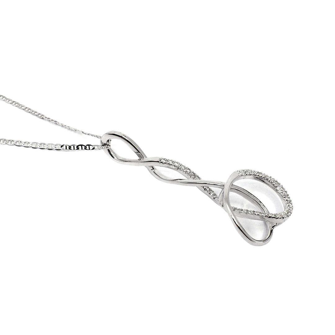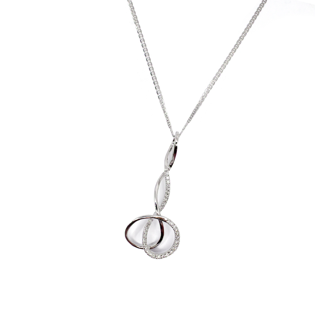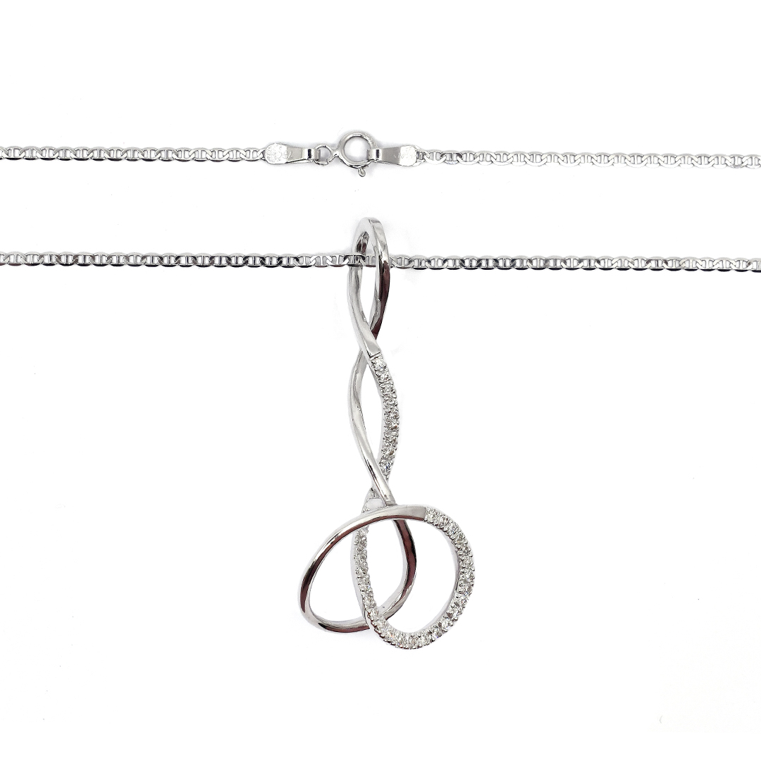 18K White Gold Mariner Chain Necklace and Pendant with Round Cut Diamonds