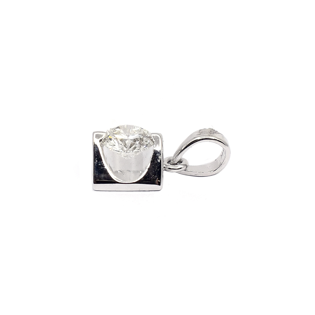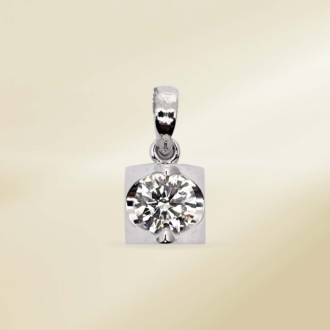 18K White Gold with Round Cut and Single Stone Diamonds Pendant