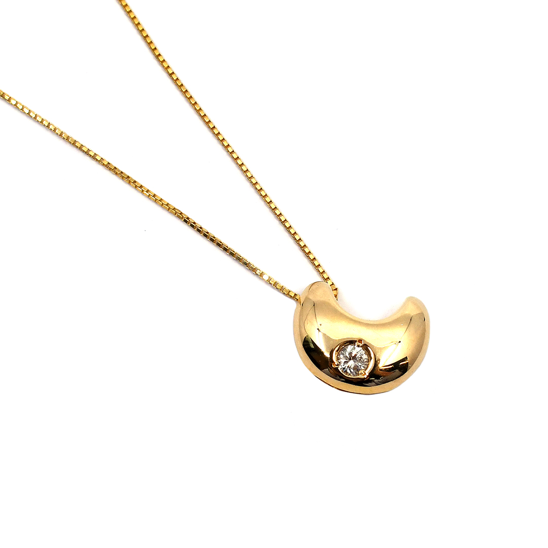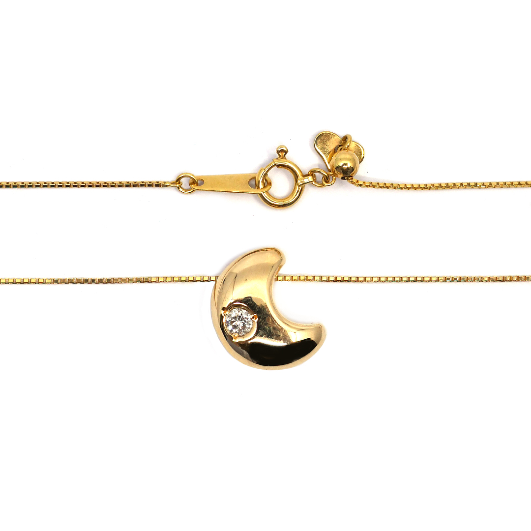 18K Yellow Gold Box Chain Necklace and Pendant with Round Cut Diamonds