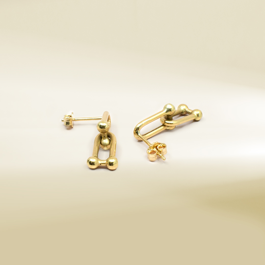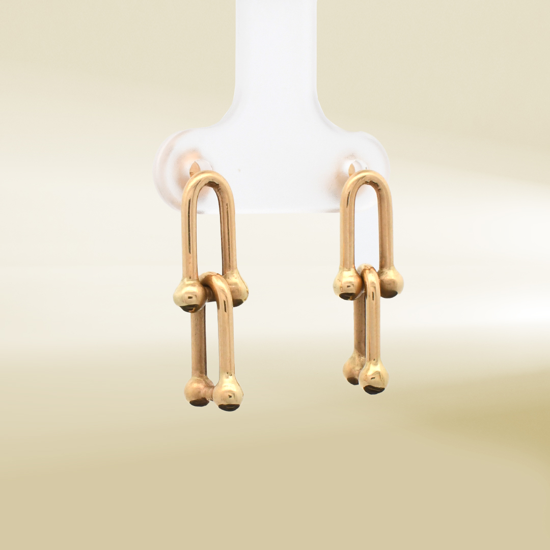 18K Yellow Gold Brand-Inpired Dangling Earrings