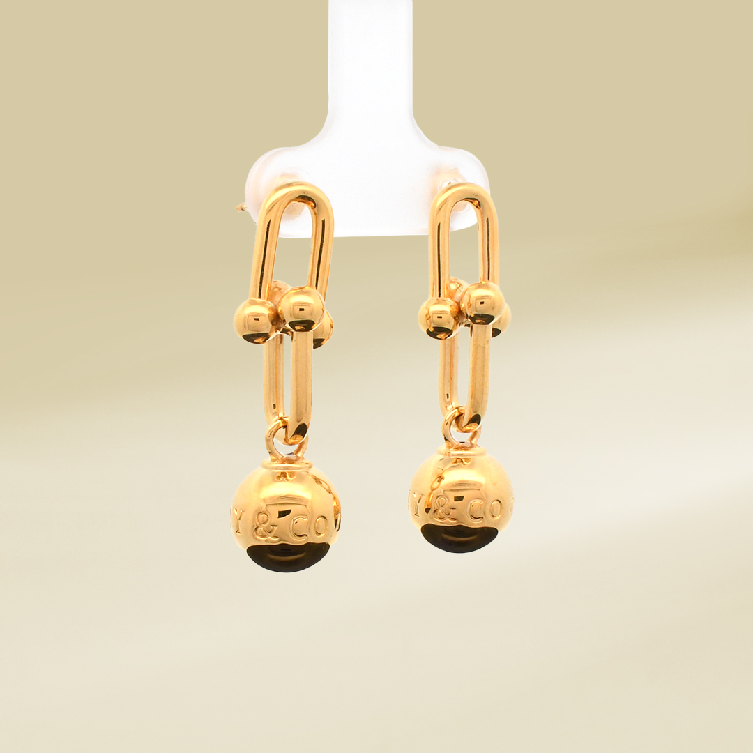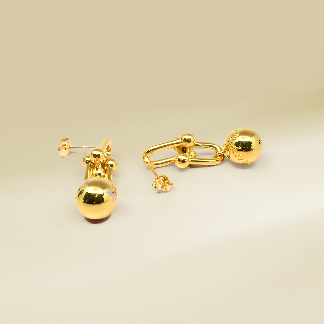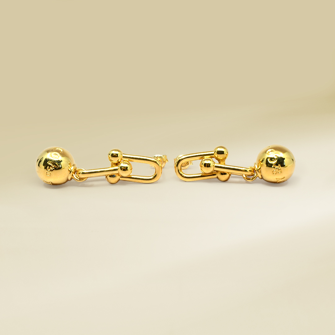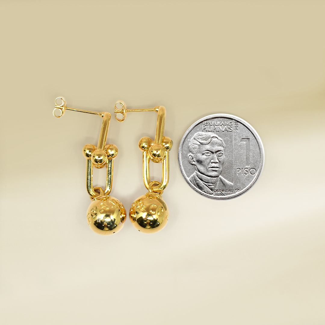 18K Yellow Gold Brand Inspired Dangling Earrings