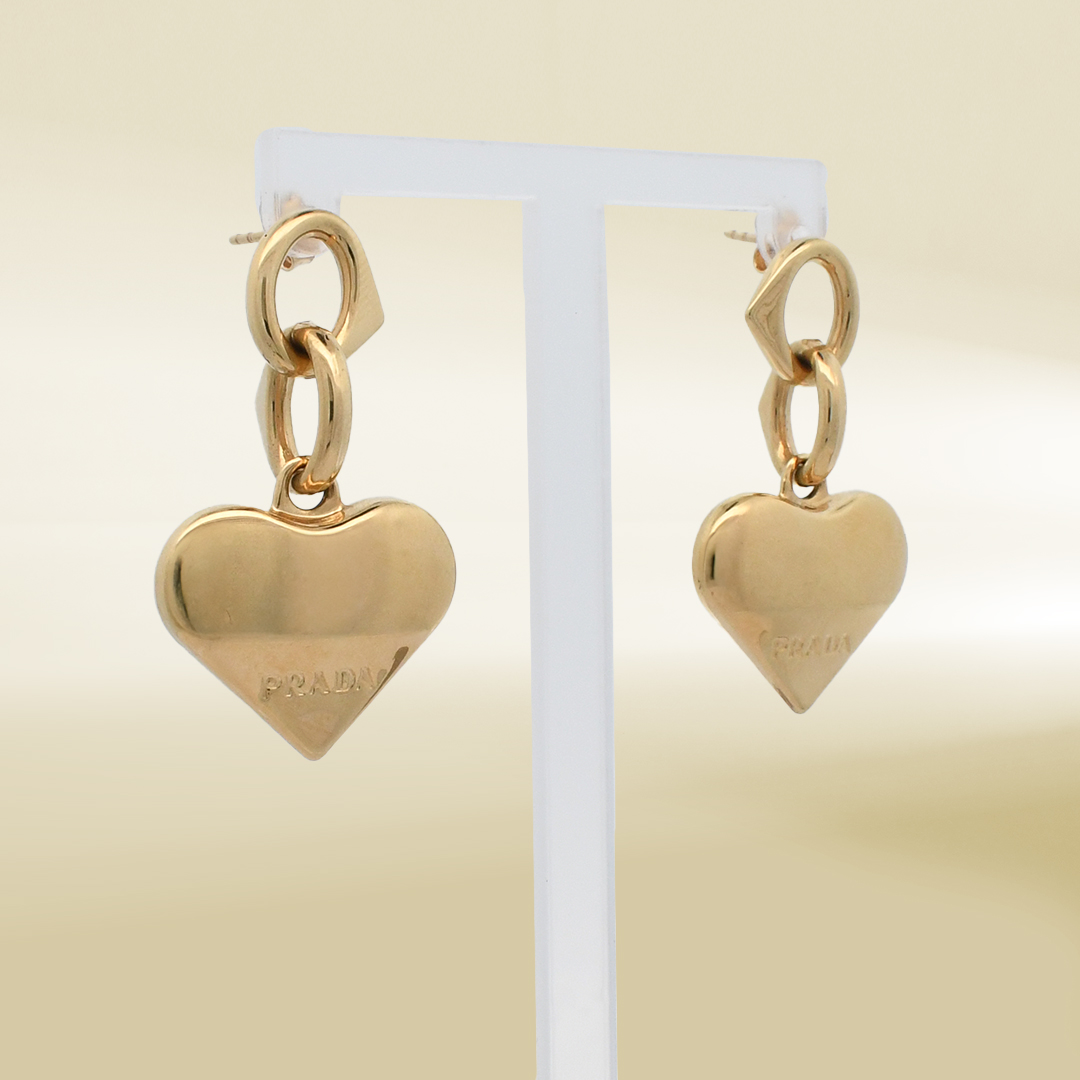 18K Yellow Gold Brand-Inspired Heart Design Earrings