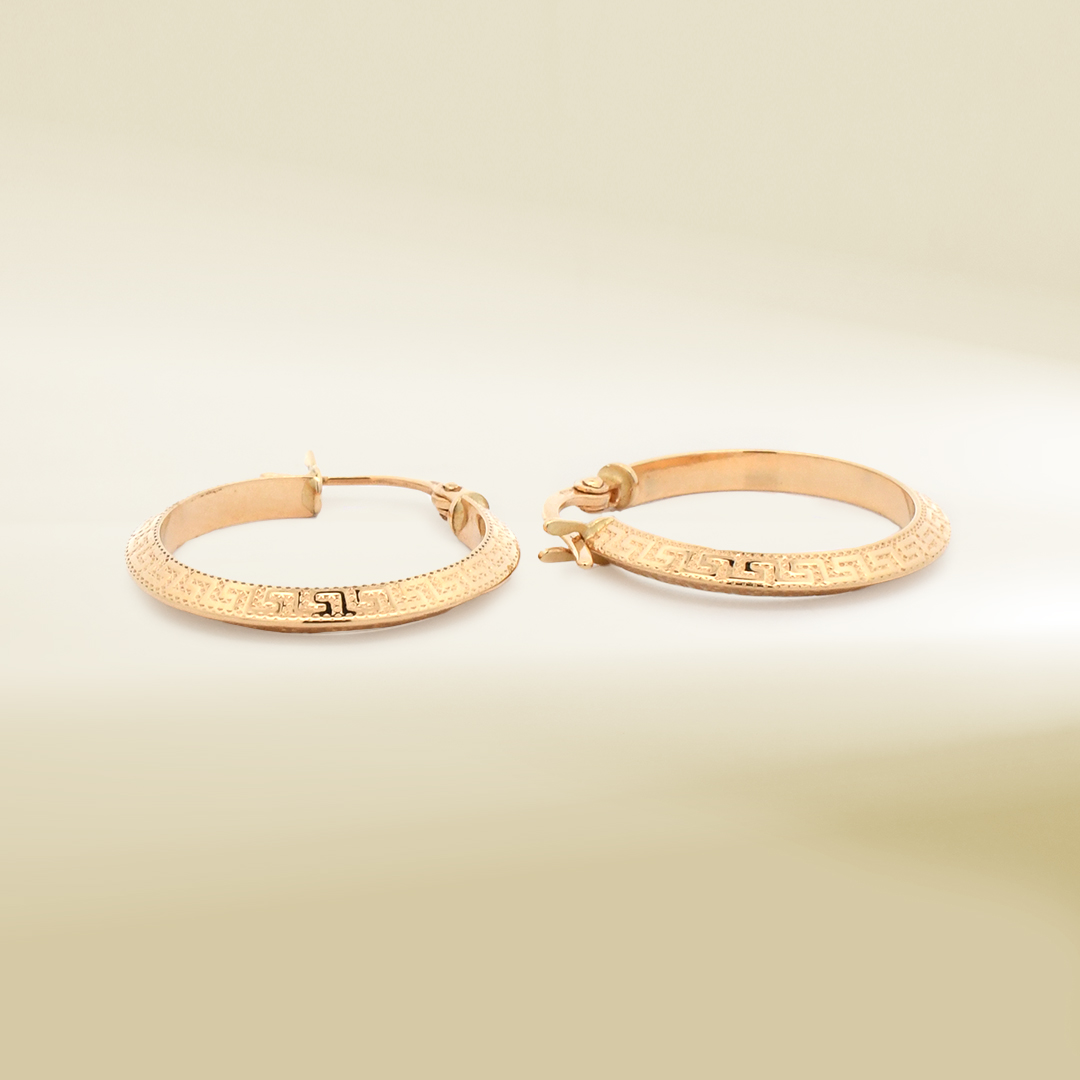 18K Yellow Gold Brand-Inspired Hoop Design Earrings