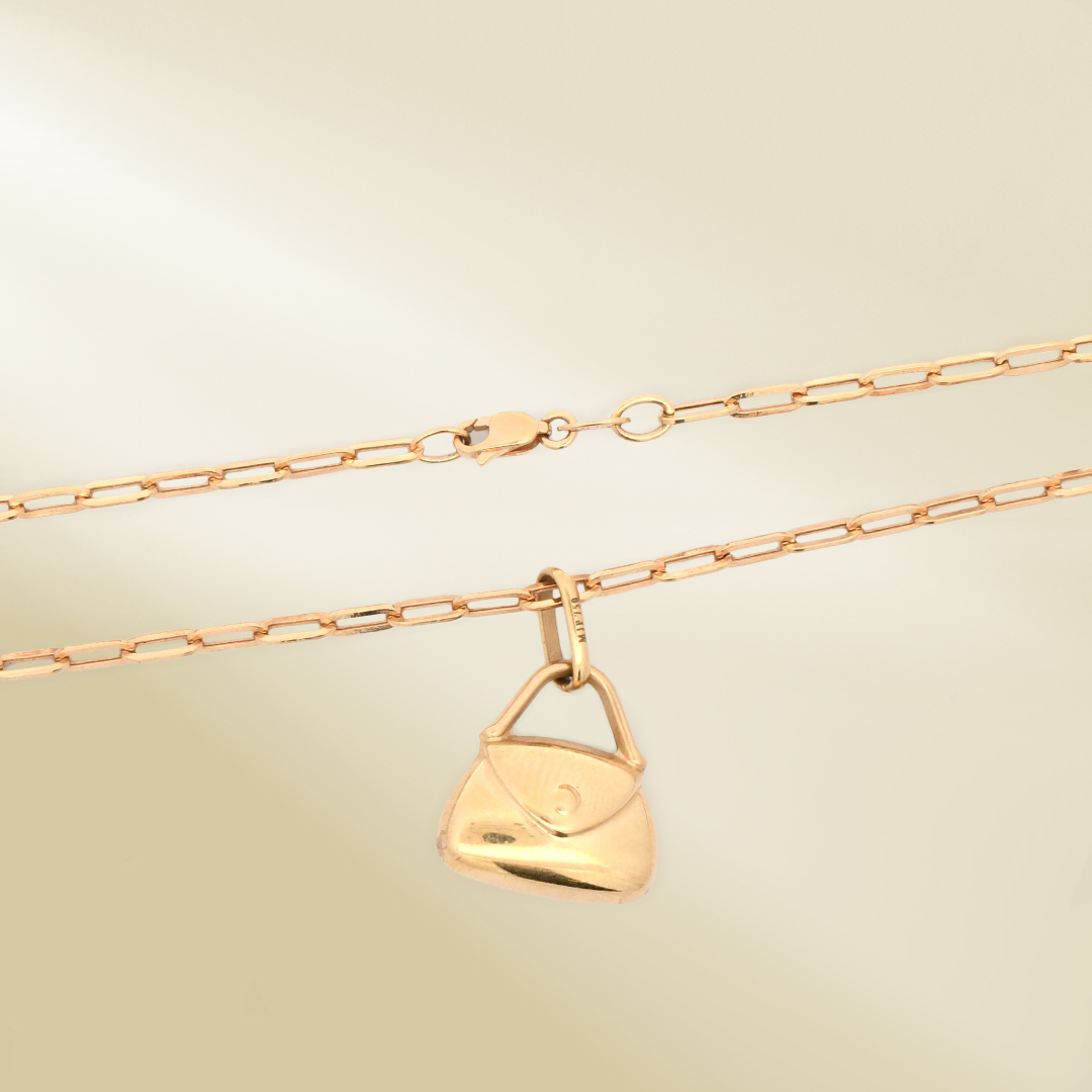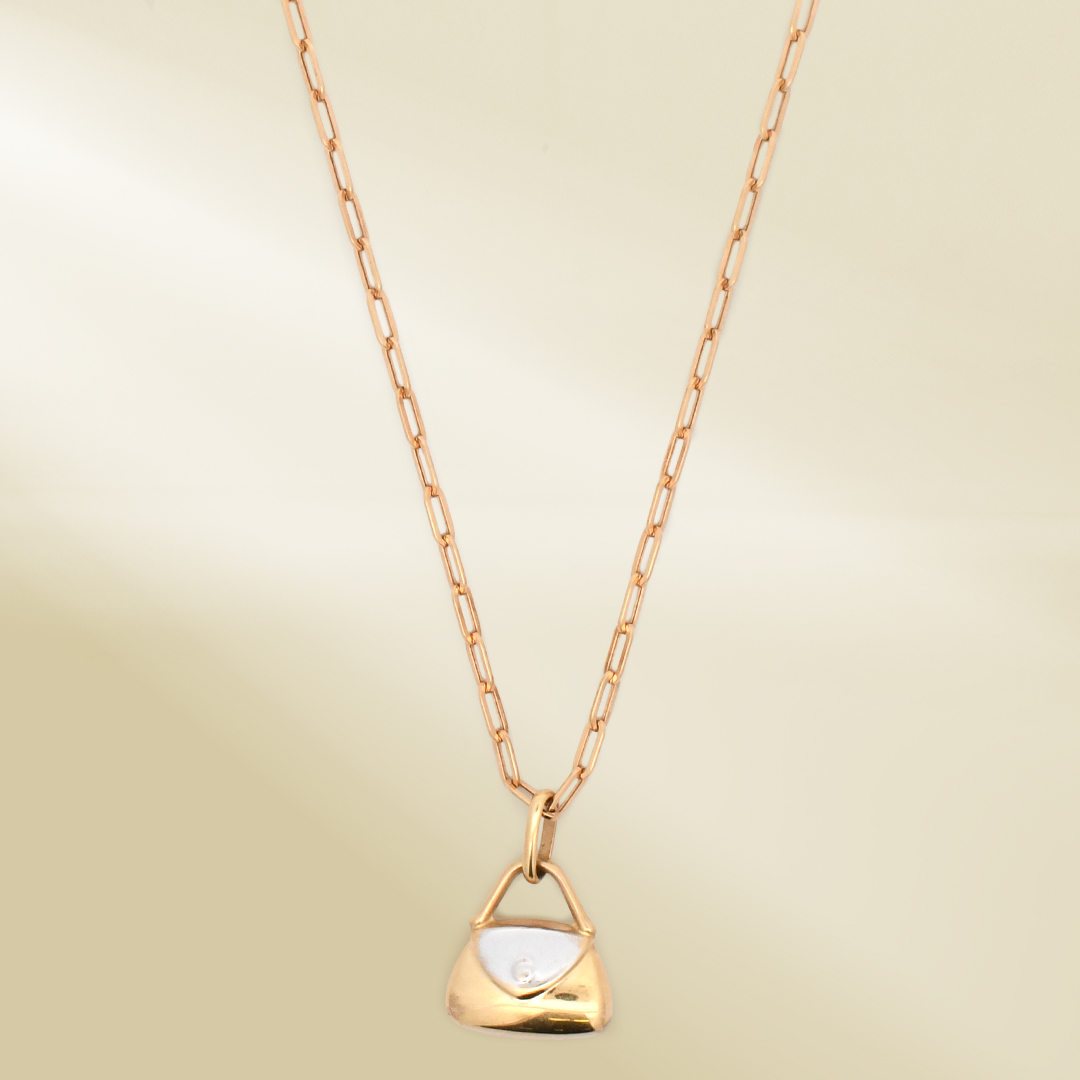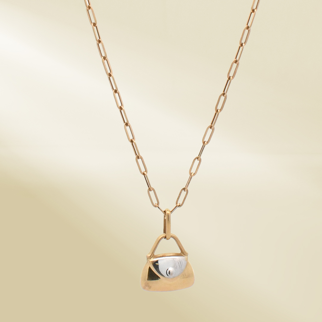 18K Yellow Gold Brand-Inspired Necklace with Two-Tone Bag Pendant