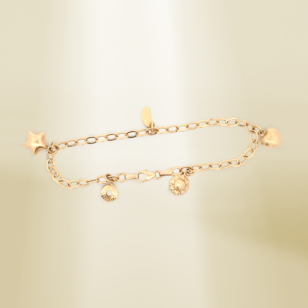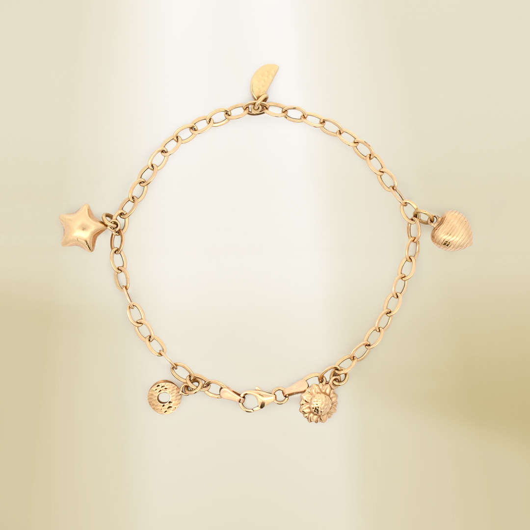 18K Yellow Gold Cable Chain Charm Bracelet
