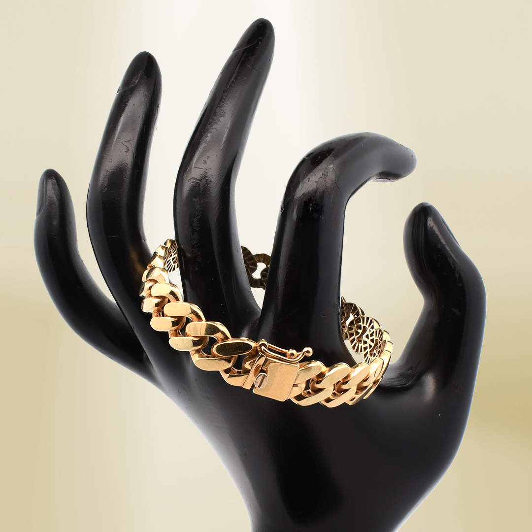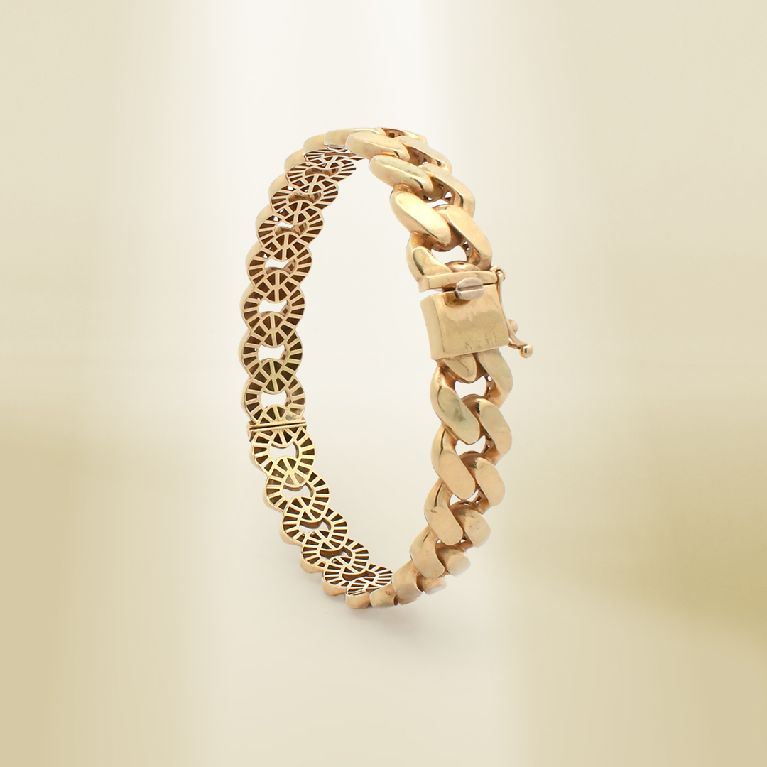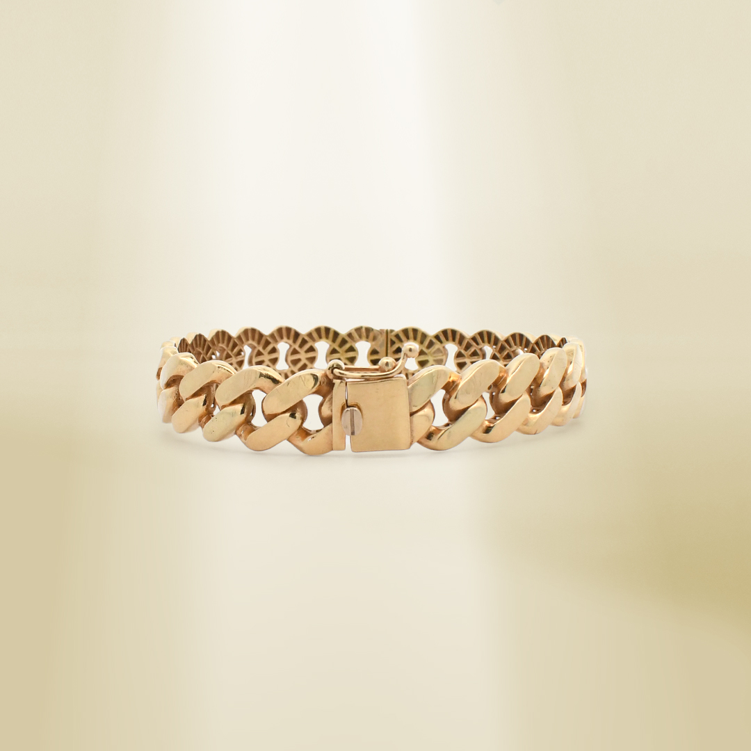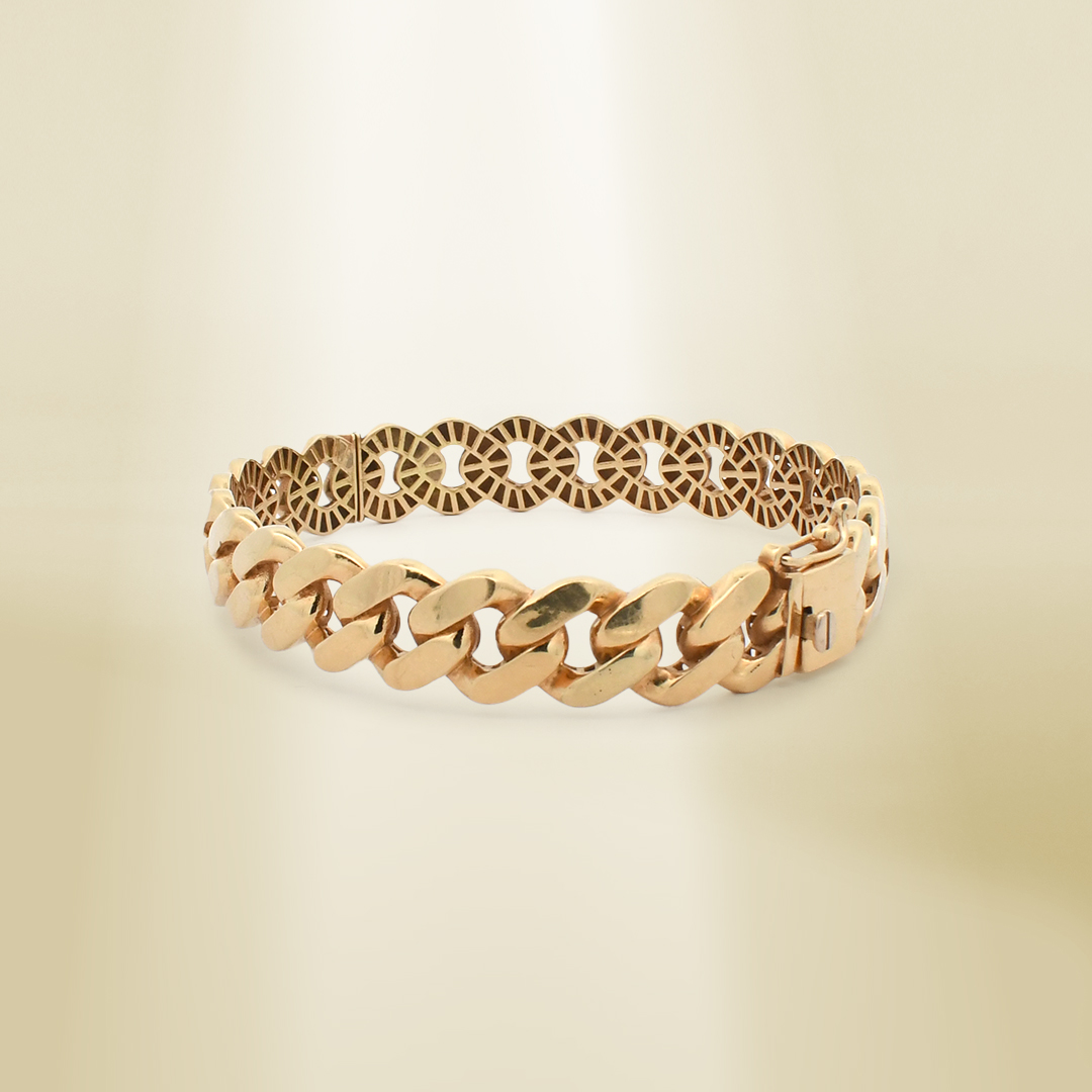 18K Yellow Gold Curb Chain Flattened Links Bangle