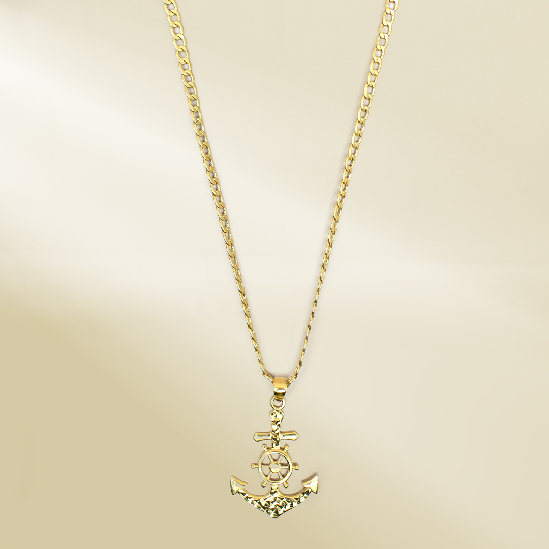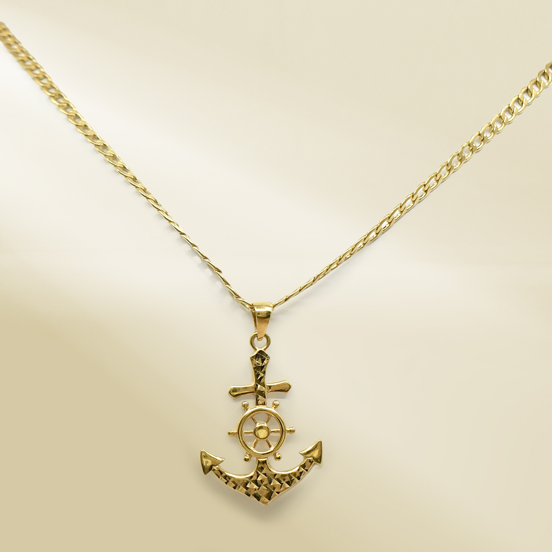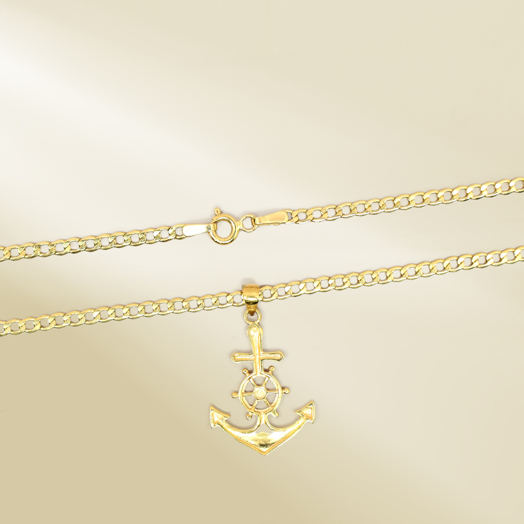 18K Yellow Gold Curb Chain Necklace with Anchor Pendant