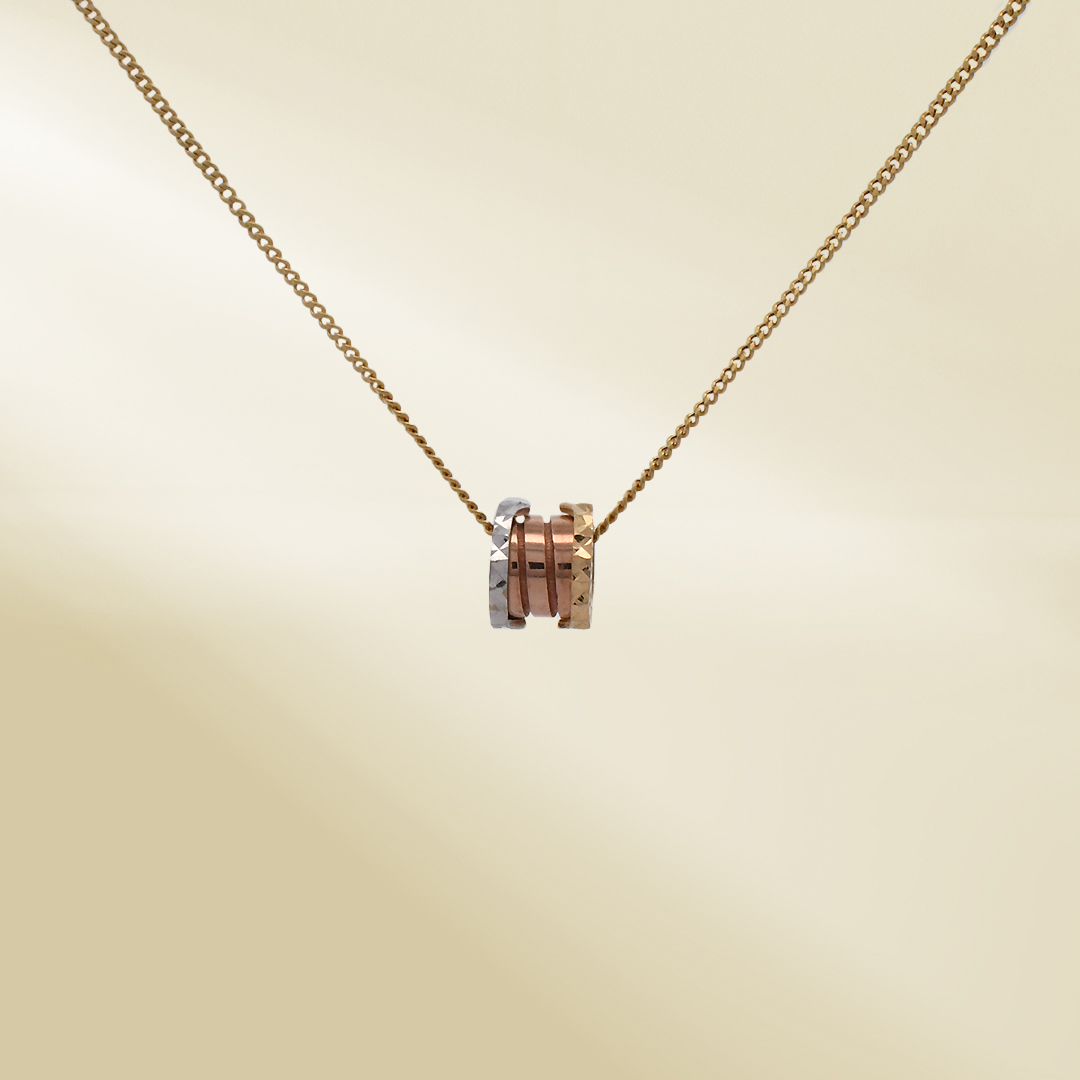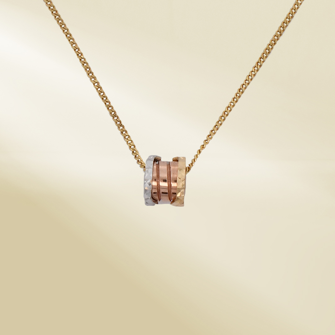 18K Yellow Gold Curb Chain Necklace with Brand-Inspired Barrel Tri-Color Pendant