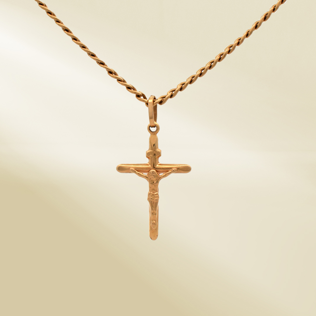 18K Yellow Gold Curb Chain Necklace with Cross Pendant