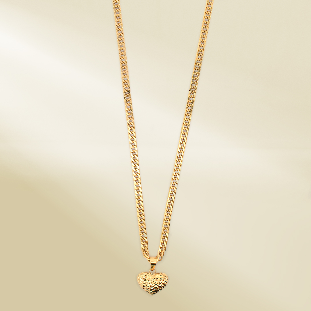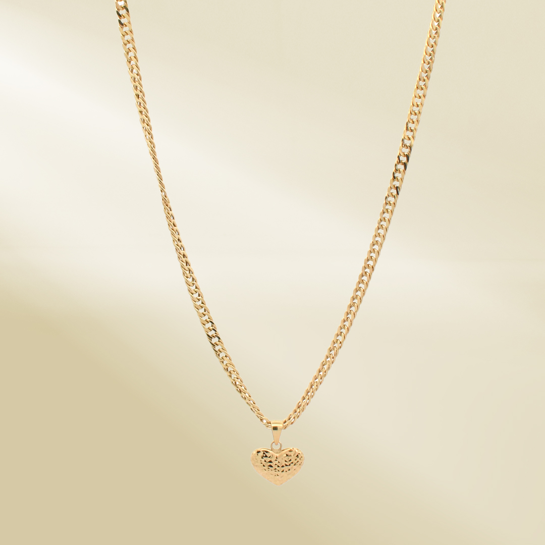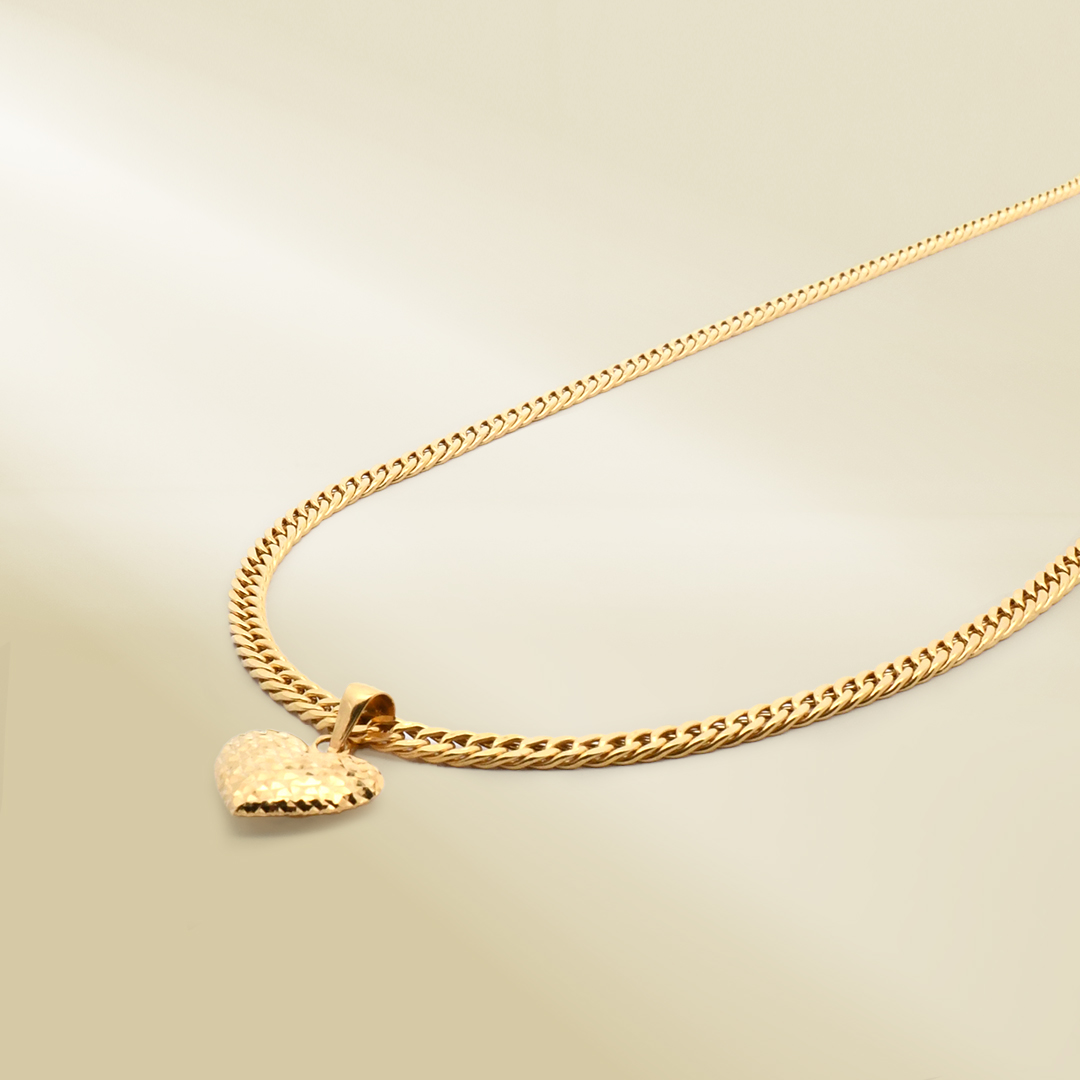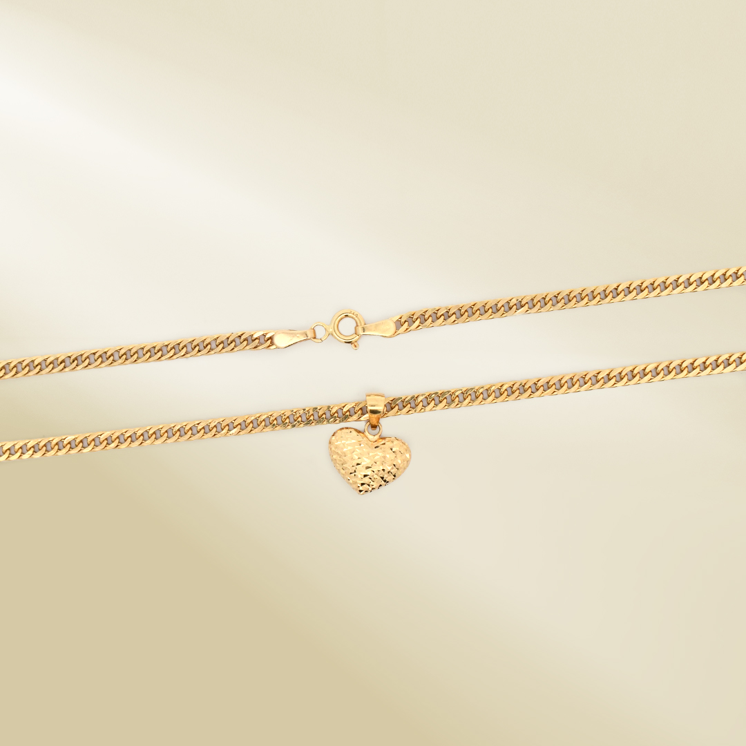 18K Yellow Gold Curb Chain Necklace with Heart Pendant