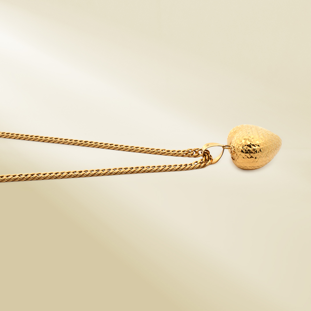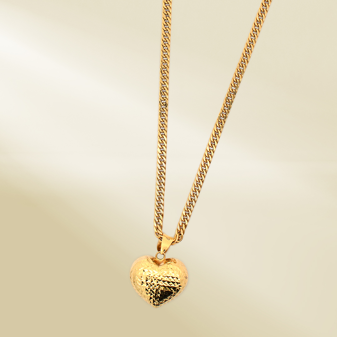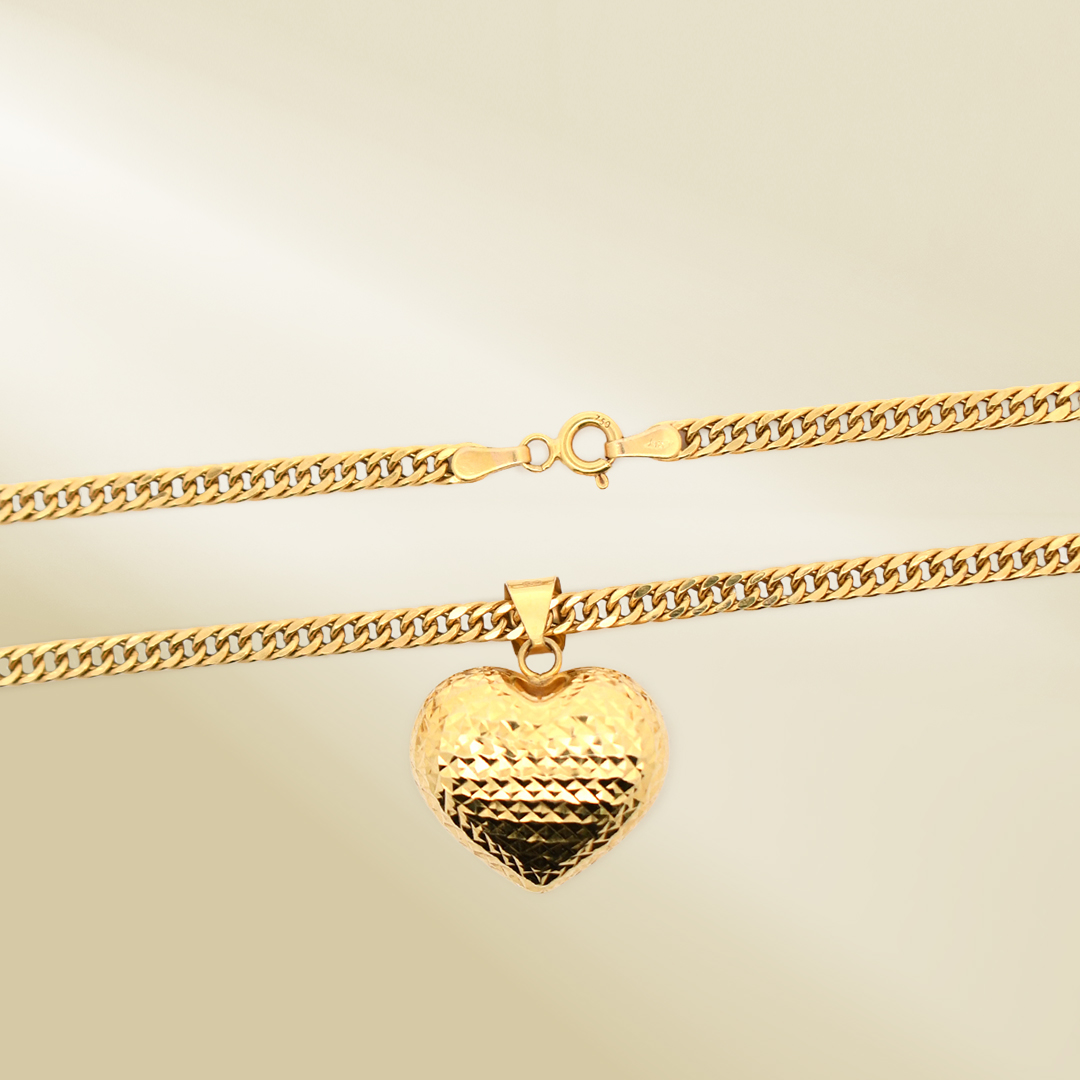 18K Yellow Gold Curb Chain Necklace with Heart Pendant