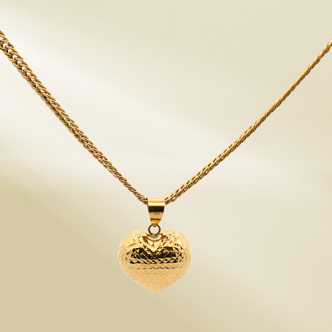Be the first to review “18K Yellow Gold Curb Chain Necklace with Heart Pendant”