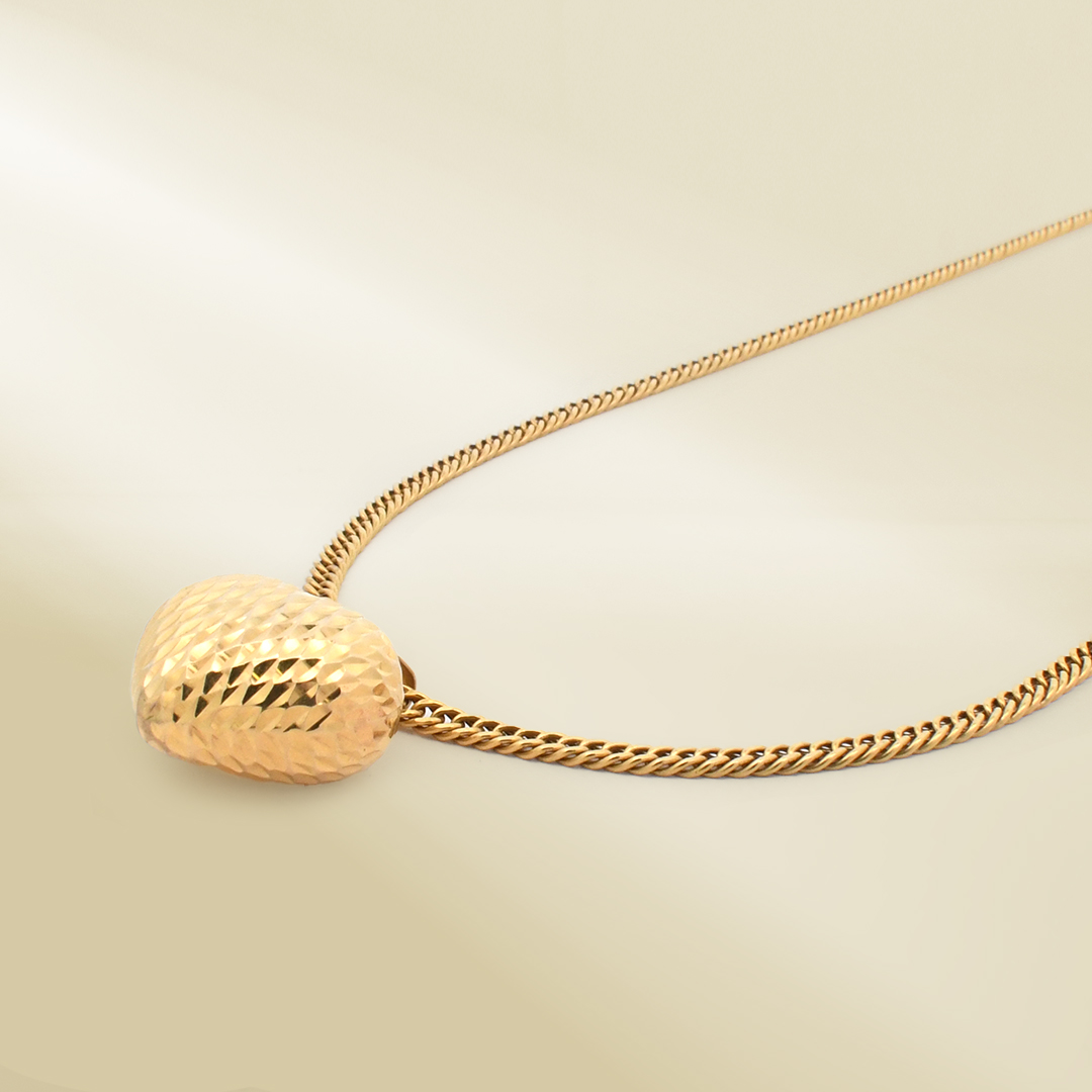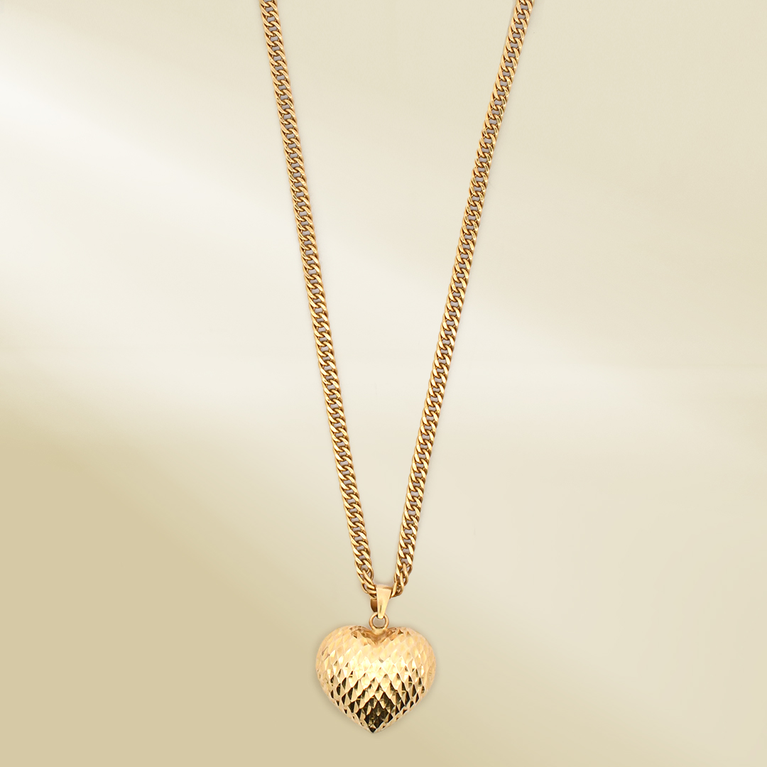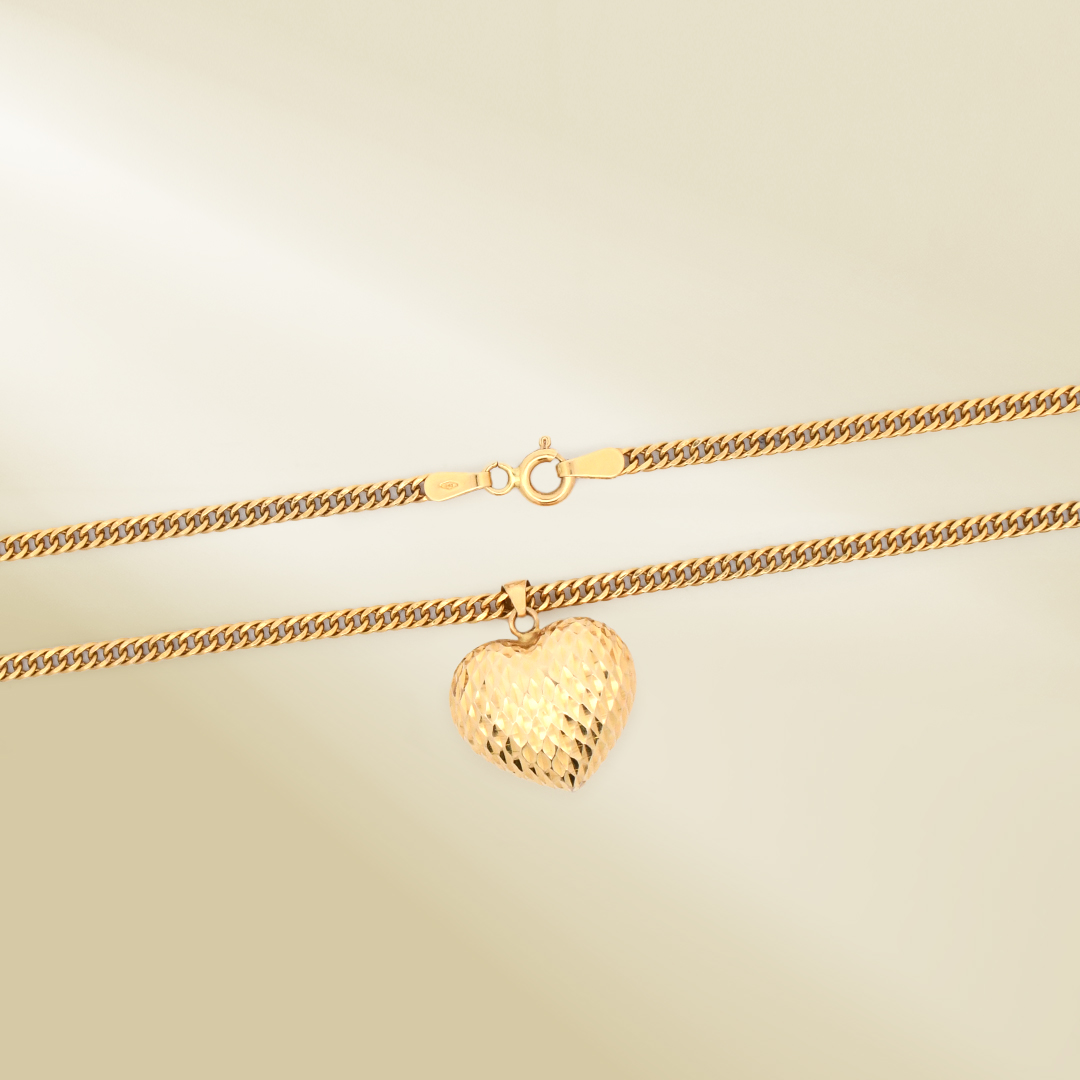 18K Yellow Gold Curb Chain Necklace with Heart Pendant