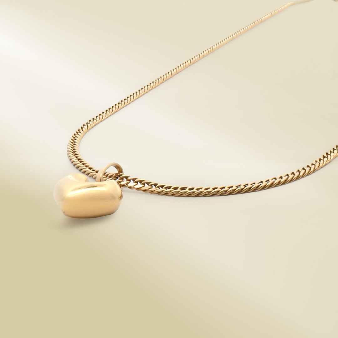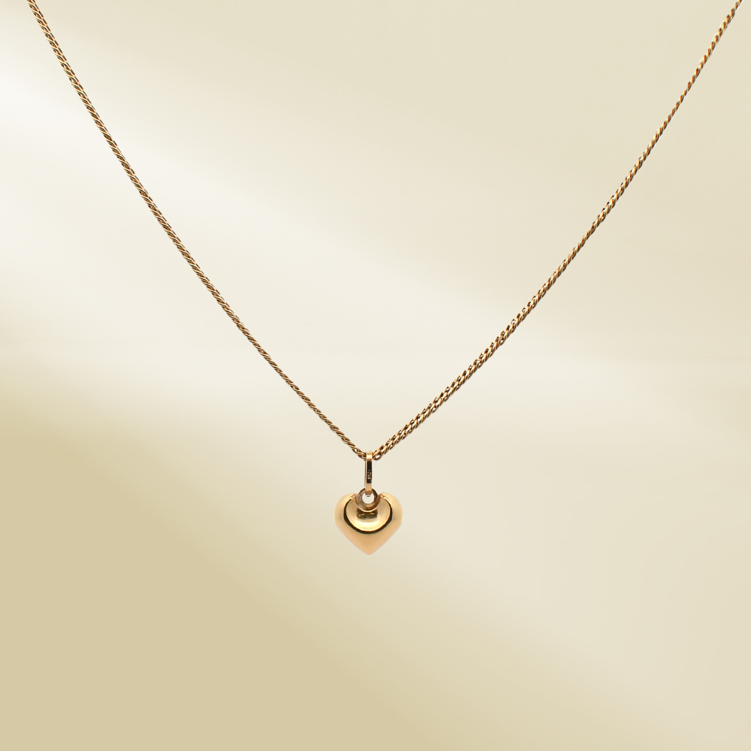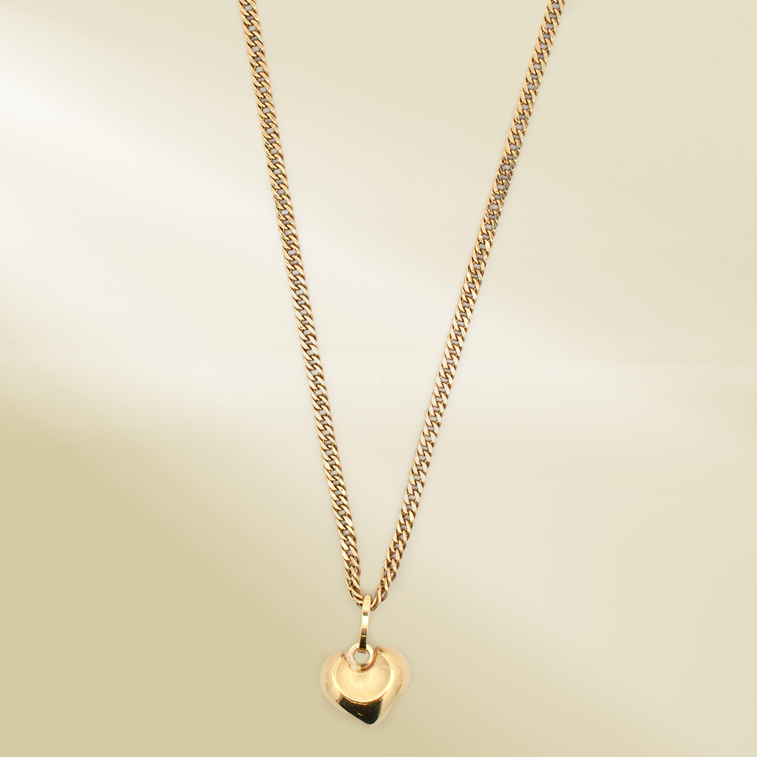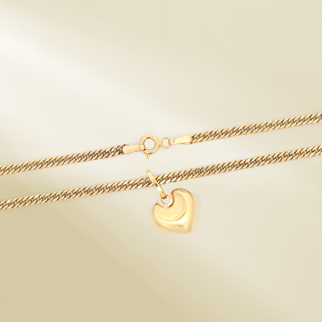 18K Yellow Gold Curb Chain Necklace with Heart Pendant