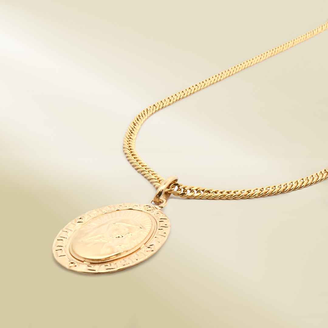 Be the first to review “18K Yellow Gold Curb Chain Necklace with Mother Mary Pendant”