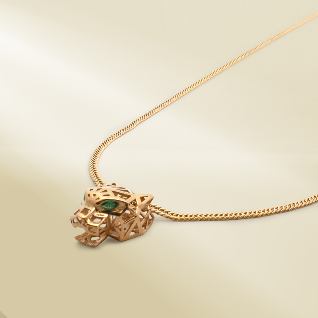 18K Yellow Gold Curb Chain Necklace with Panther Pendant