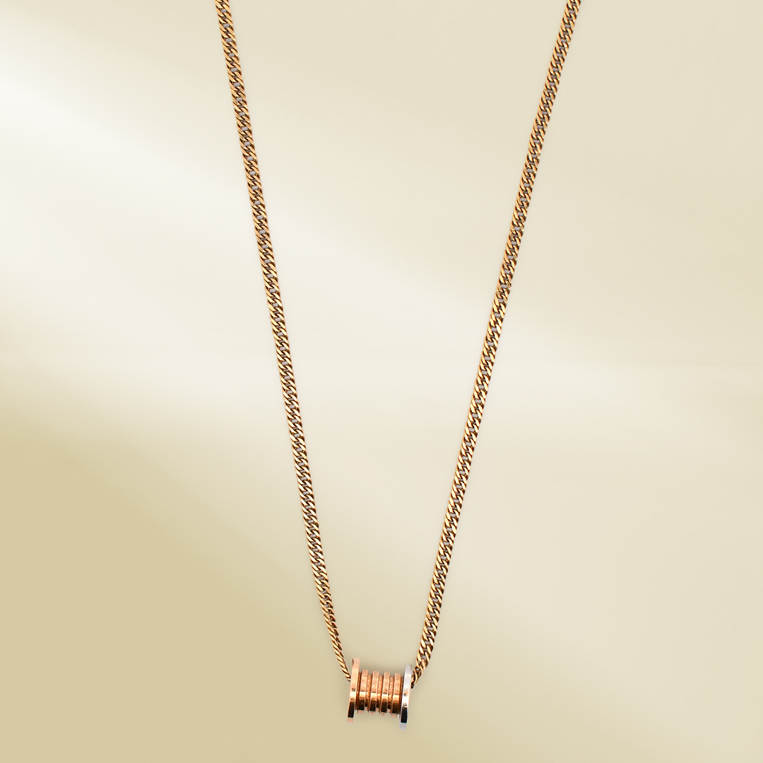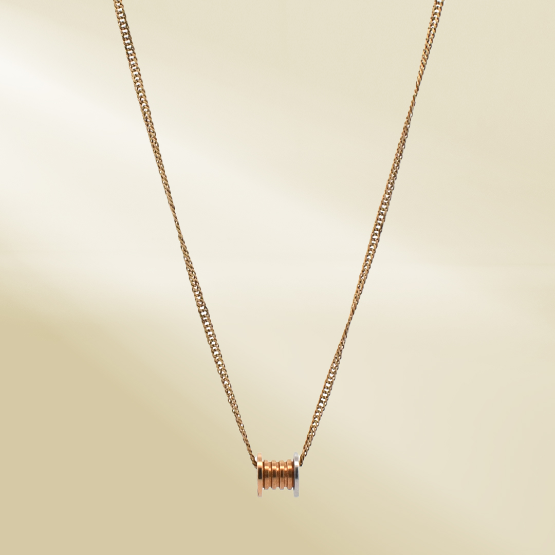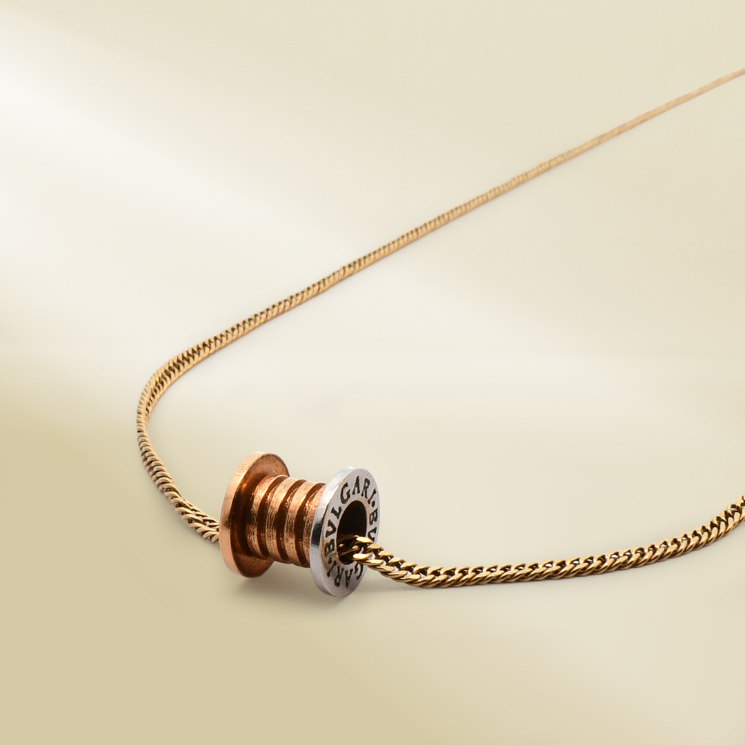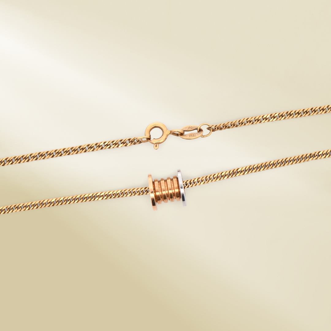 18K Yellow Gold Curb Chain Necklace with Tri-color Pendant