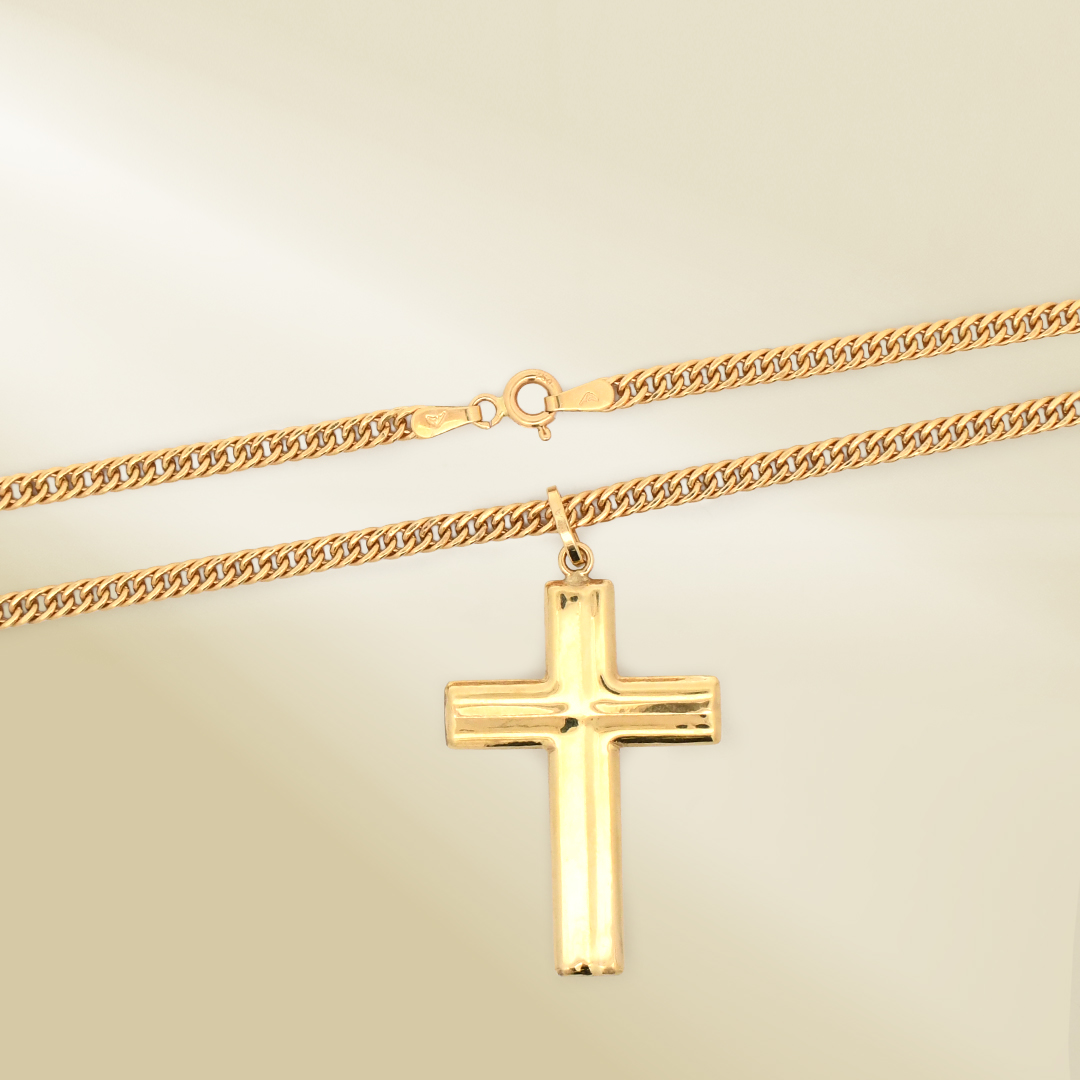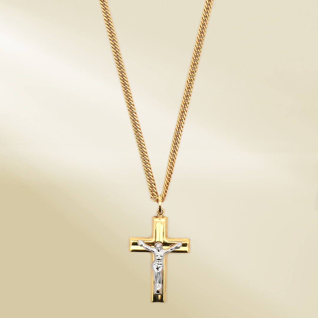 18K Yellow Gold Curb Chain Necklace with Two-Tone Cross Pendant