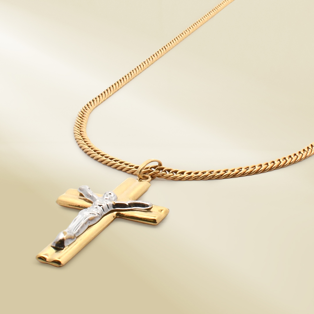 Be the first to review “18K Yellow Gold Curb Chain Necklace with Two-Tone Cross Pendant”