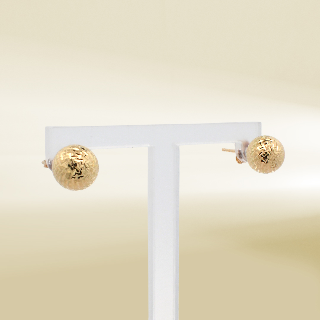 18K Yellow Gold Diamond Cut Ball Design Earrings