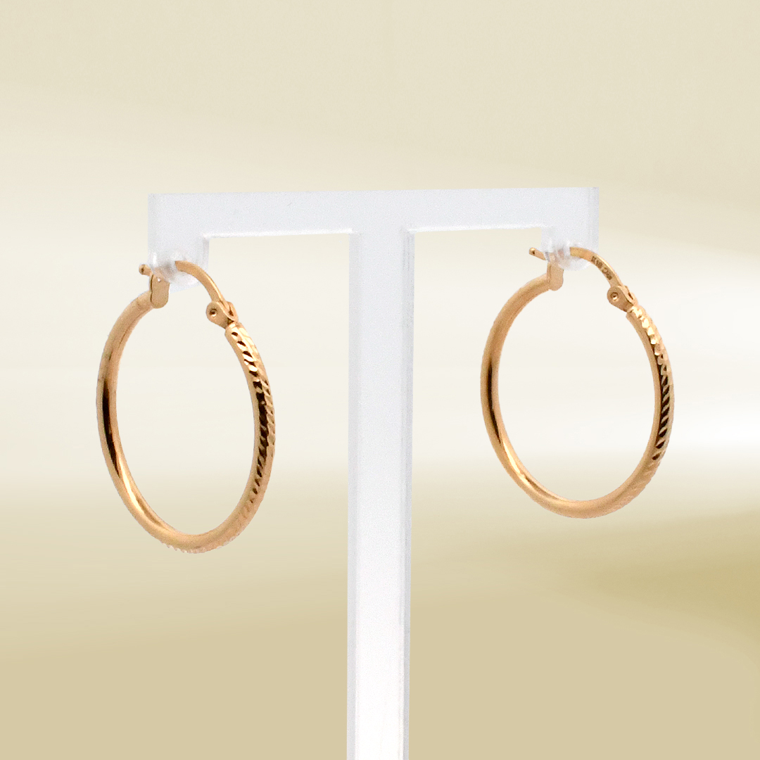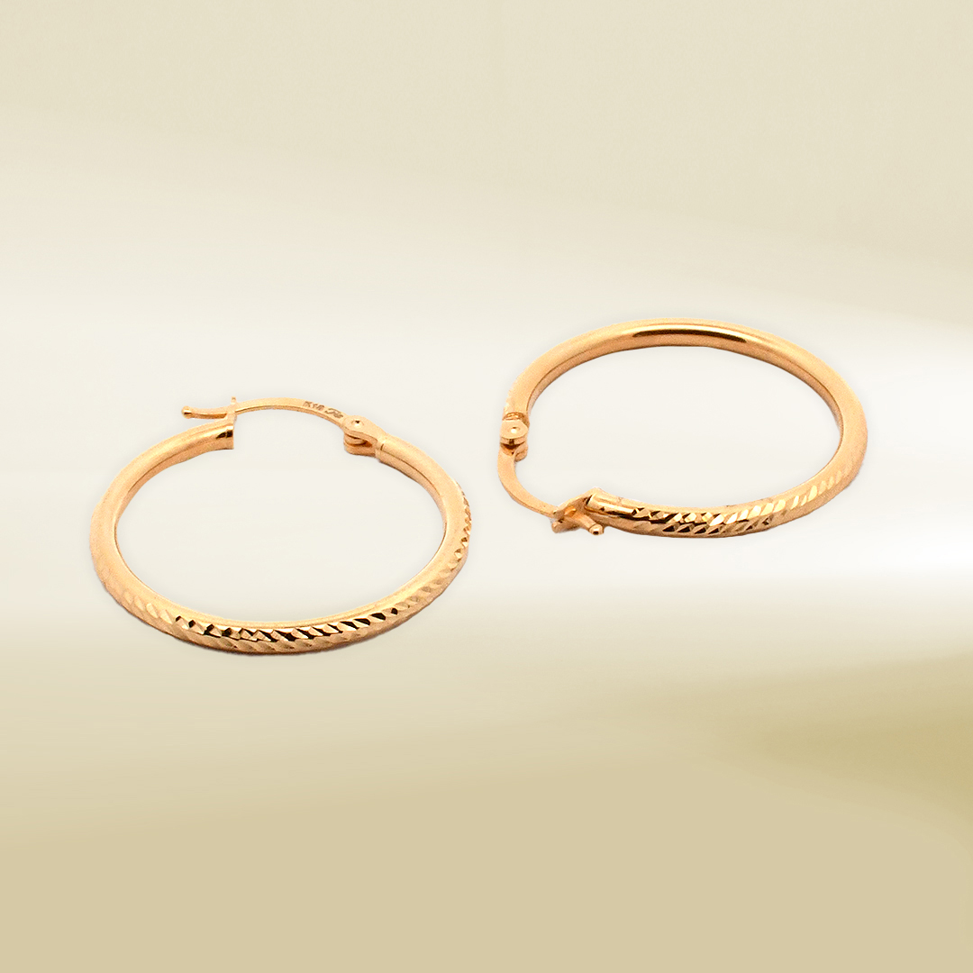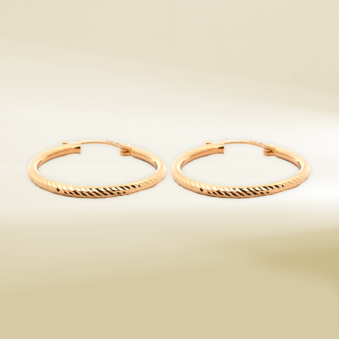 18K Yellow Gold Diamond Cut Hoop Earrings