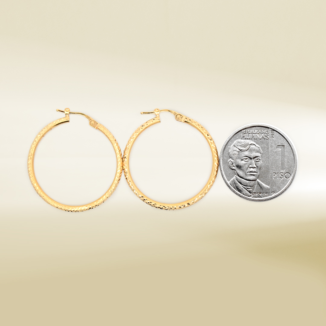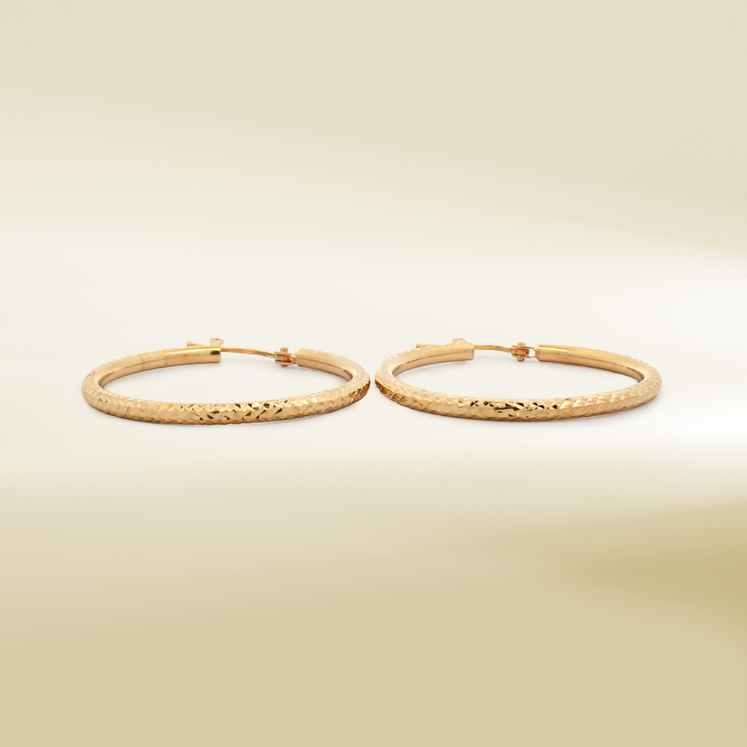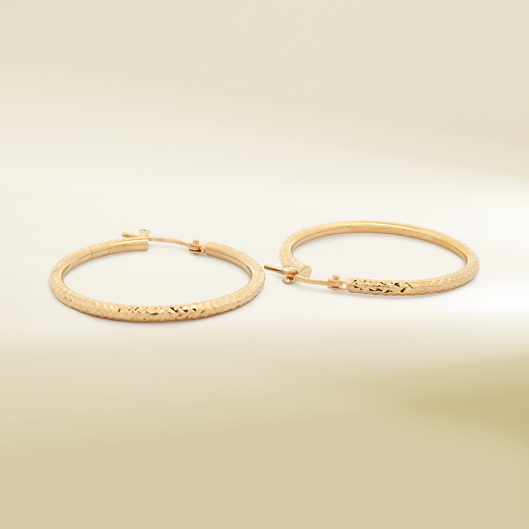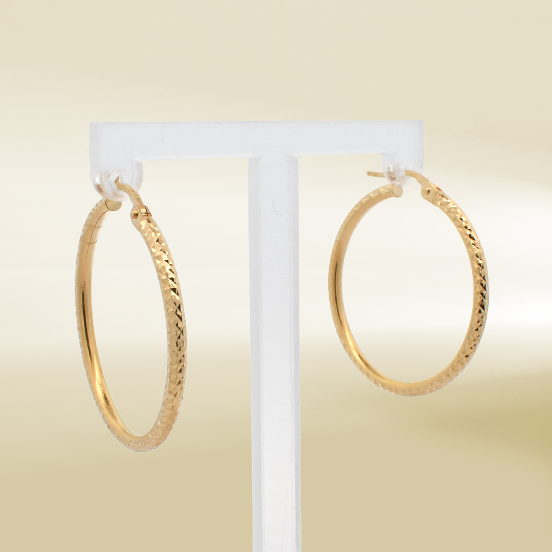 18K Yellow Gold Diamond Cut Hoop Earrings