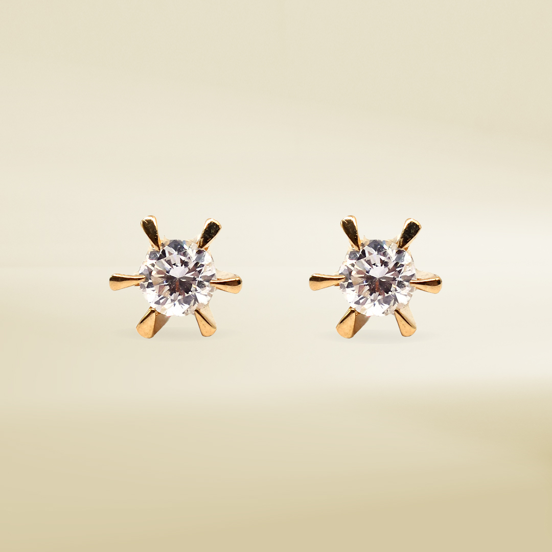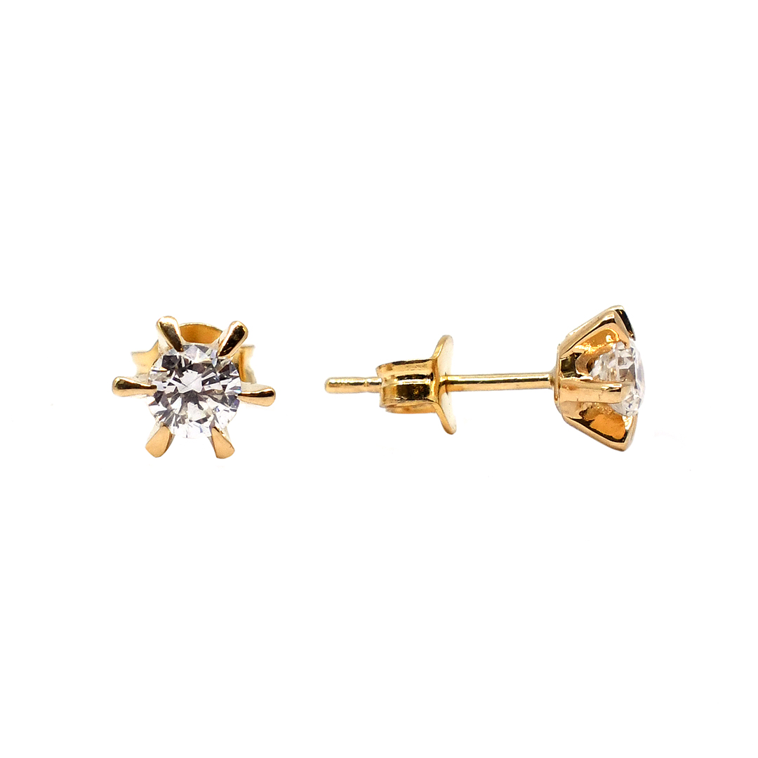 18K Yellow Gold Earrings with Round Cut Diamonds