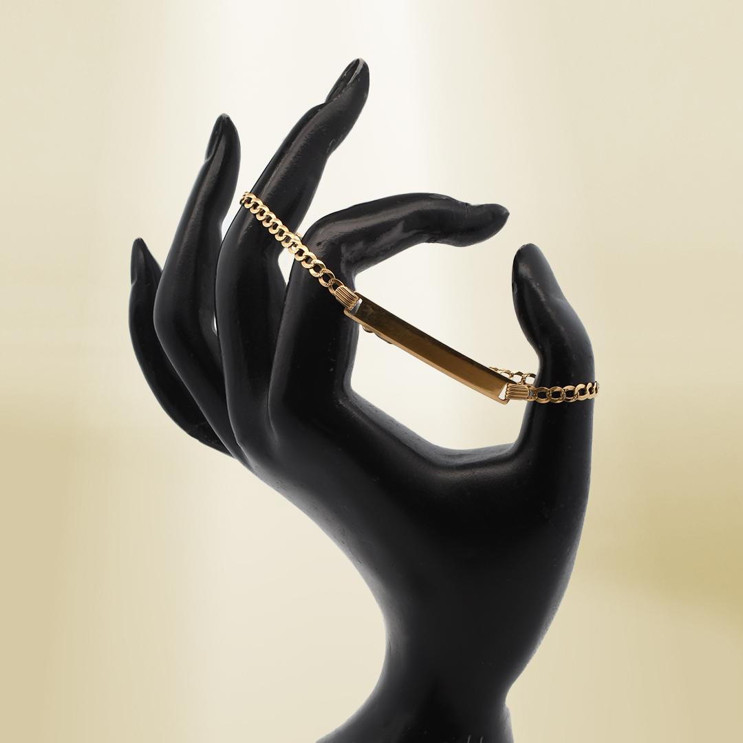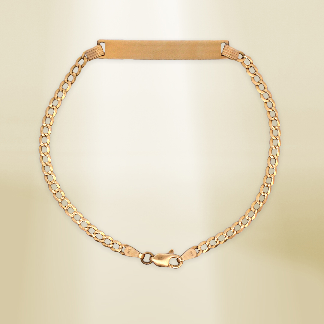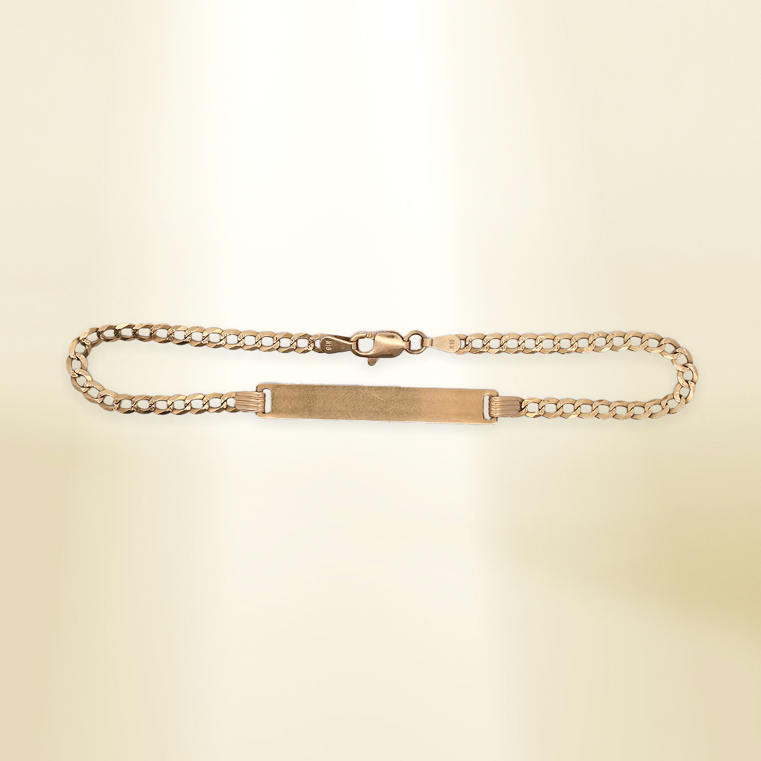 18K Yellow Gold Flat Curb Chain with ID Bracelet