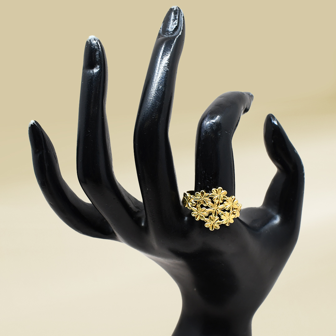 18K Yellow Gold Flower Design Band Ladies’ Ring