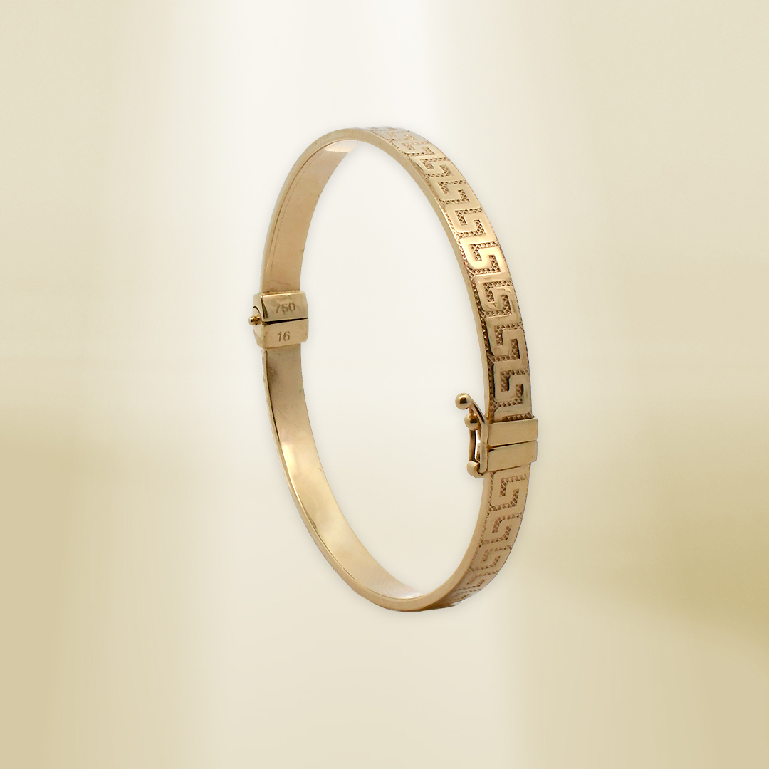 18K Yellow Gold Greek Pattern Inspired Bangle