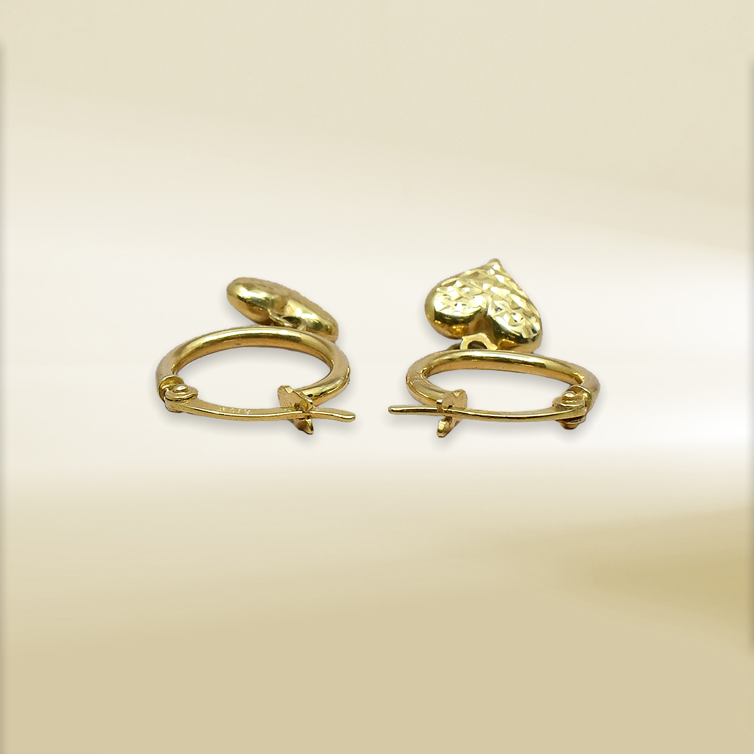 Be the first to review “18K Yellow Gold Hoop with Heart Dangle Earrings”